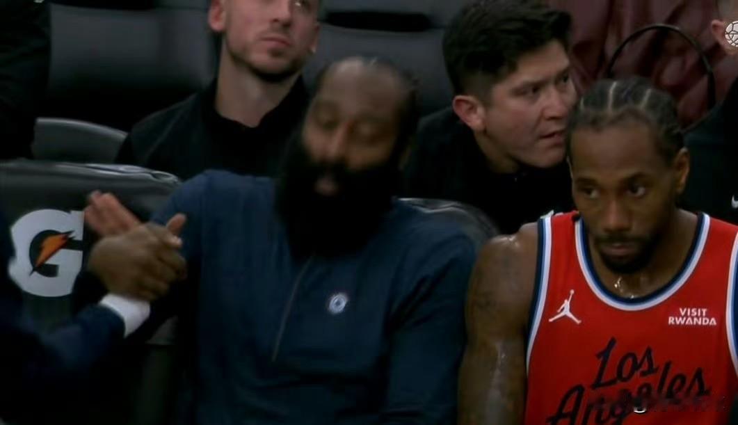 哈登真是没心没肺啊! 今天,主场作战的快船队在伦纳德的带领下末节发力,最终以118-101大胜爵士队,豪取6连胜。 本场比赛,伦纳德再度“天神下凡”,他全场狂轰45分7篮板,其中末节单节20分,以一己之力带领球队赢下了比赛。而另一位核心球员哈登则在第四节被弃用,没有获得上场时间,坐在替补席上看着伦纳德单核带队取胜。 值得一提的是,在胜局已定,场上球员被换下场休息时,哈登还非常开心的和队友一一击掌庆祝胜利,丝毫没有因自己被弃用而影响心情,真是一个没心没肺的大男孩。