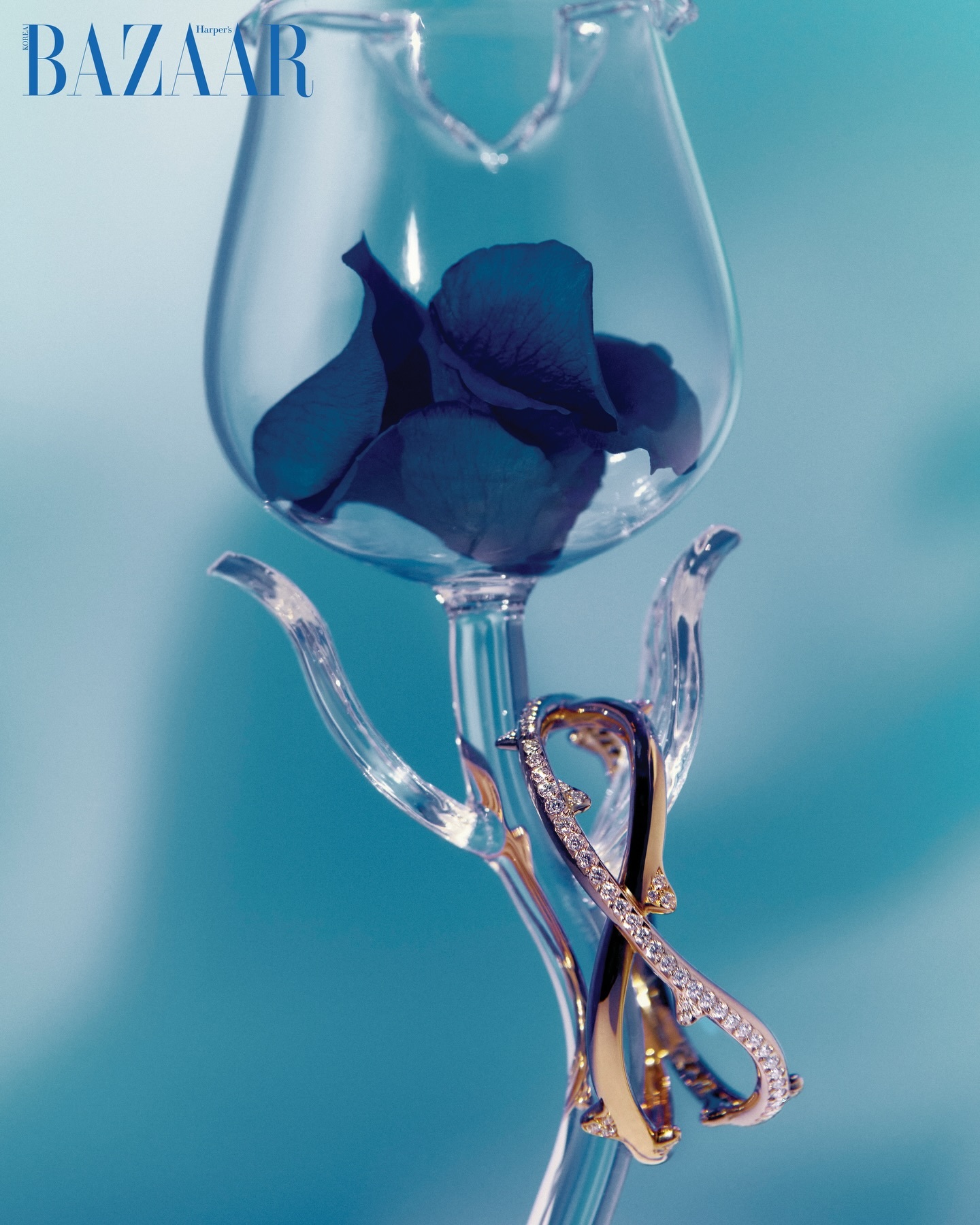 韩版BAZAAR一月刊由金妍儿演绎一组Dior Joaillerie珠宝大片,高雅的蓝玫瑰与璀璨的钻石交辉相映。📷:Go Won Tae