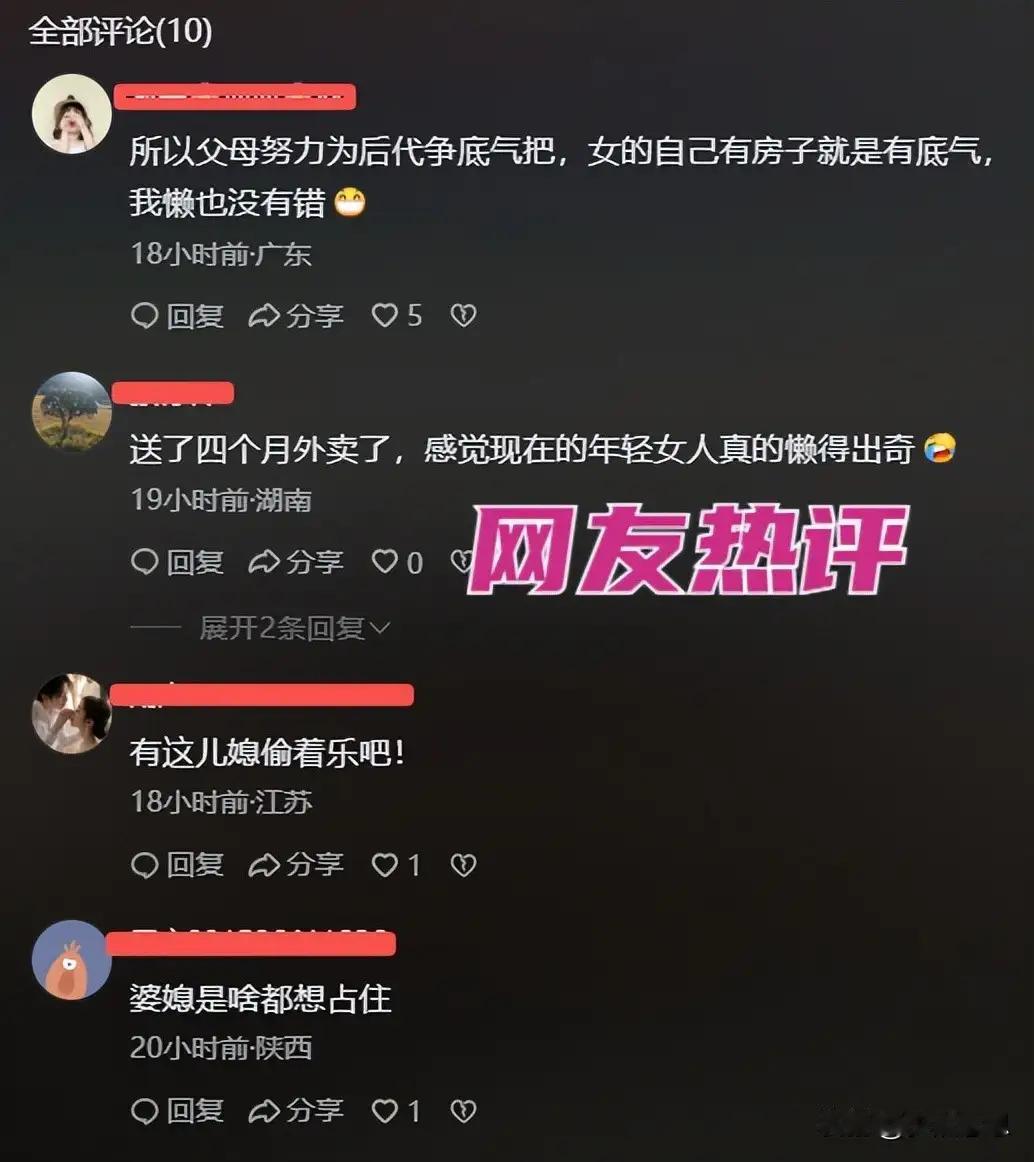 婆婆嫌儿媳躺平不上班,儿媳:房子是我家陪嫁,看不惯可以走! 这段故事反映了家庭成员之间在经济地位和观念差异下出现的矛盾,也强调了相互尊重与理解的重要性。以下是一些分析和建议,或许能帮助改善类似的家庭关系: 一、理解与尊重是家庭和谐的基础 婆婆应尊重儿媳的生活方式和选择,不应以传统观念强加给对方。相互尊重能够减少误会与冲突。 儿媳也需理解婆婆的担忧和期望,试着站在对方角度考虑问题。适当调整生活习惯,表现出善意。 二、沟通是解决问题的关键 家庭成员应坦诚交流各自的想法和需求,避免情绪堆积和误解升级。 可以定期举行家庭会议,讨论生活中的问题,找到共同的解决方案。 三、家庭角色的重新定位 经济地位的变化打破了传统家庭角色的界限,家庭成员需要共同适应新的角色和责任。 儿媳如果能积极参与家庭事务,或寻找工作,既能增加家庭凝聚力,也能获得更多的认同感。 婆婆应放宽心态,接受家庭成员的多样性,理解每个人都有成长和改变的空间。 四、建立支持和理解的家庭氛围 家庭成员应多表达关心与理解,避免指责和攻击。 可以通过共同做一些家务、外出旅游或参与家庭活动,增强情感联系。 五、寻求外部帮助 如果家庭矛盾难以调和,可以考虑请家庭咨询师或心理专家协助调解。 总之,家庭的幸福需要每个人的努力和包容。只有在相互尊重、理解和沟通的基础上,家庭关系才能更加和谐,生活也会更加幸福美满。