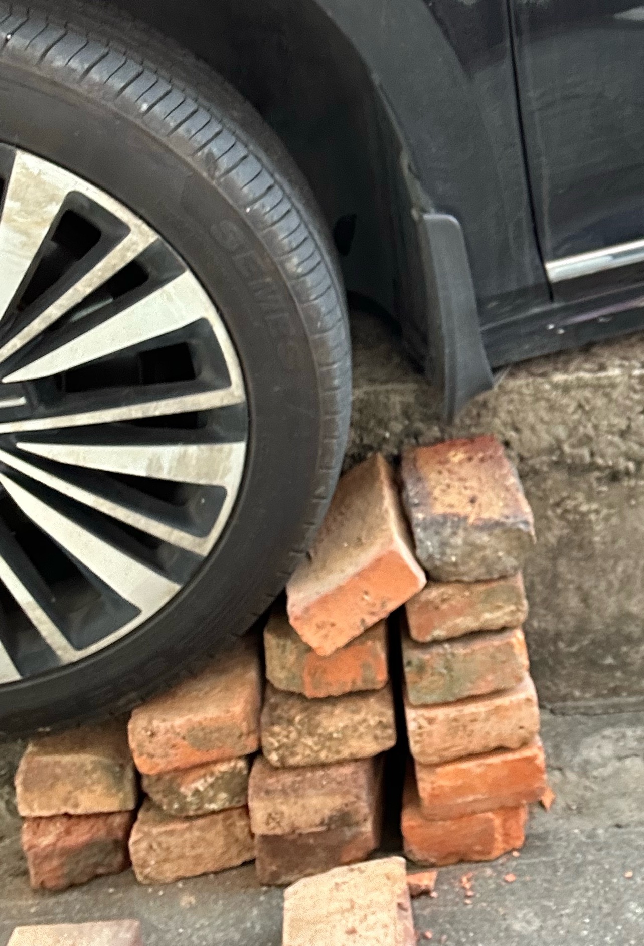 轮子掉马路牙子里了🛞怎么都弄不上来