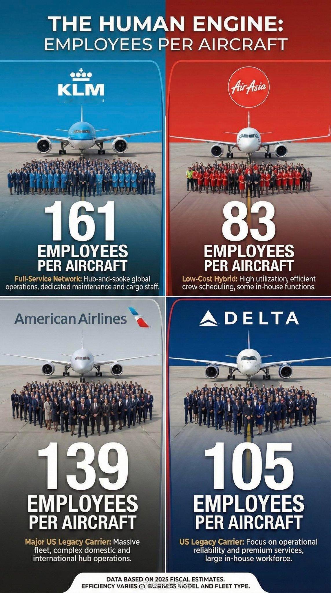 航空公司的残酷真相:阿联酋航空每架飞机配备267名员工(简直像一支小型军队)。瑞安航空呢?基本上只靠一支足球队(43人)就能维持运营。就43人而已。难怪瑞安航空的机票便宜得令人发指。阿联酋航空 上海