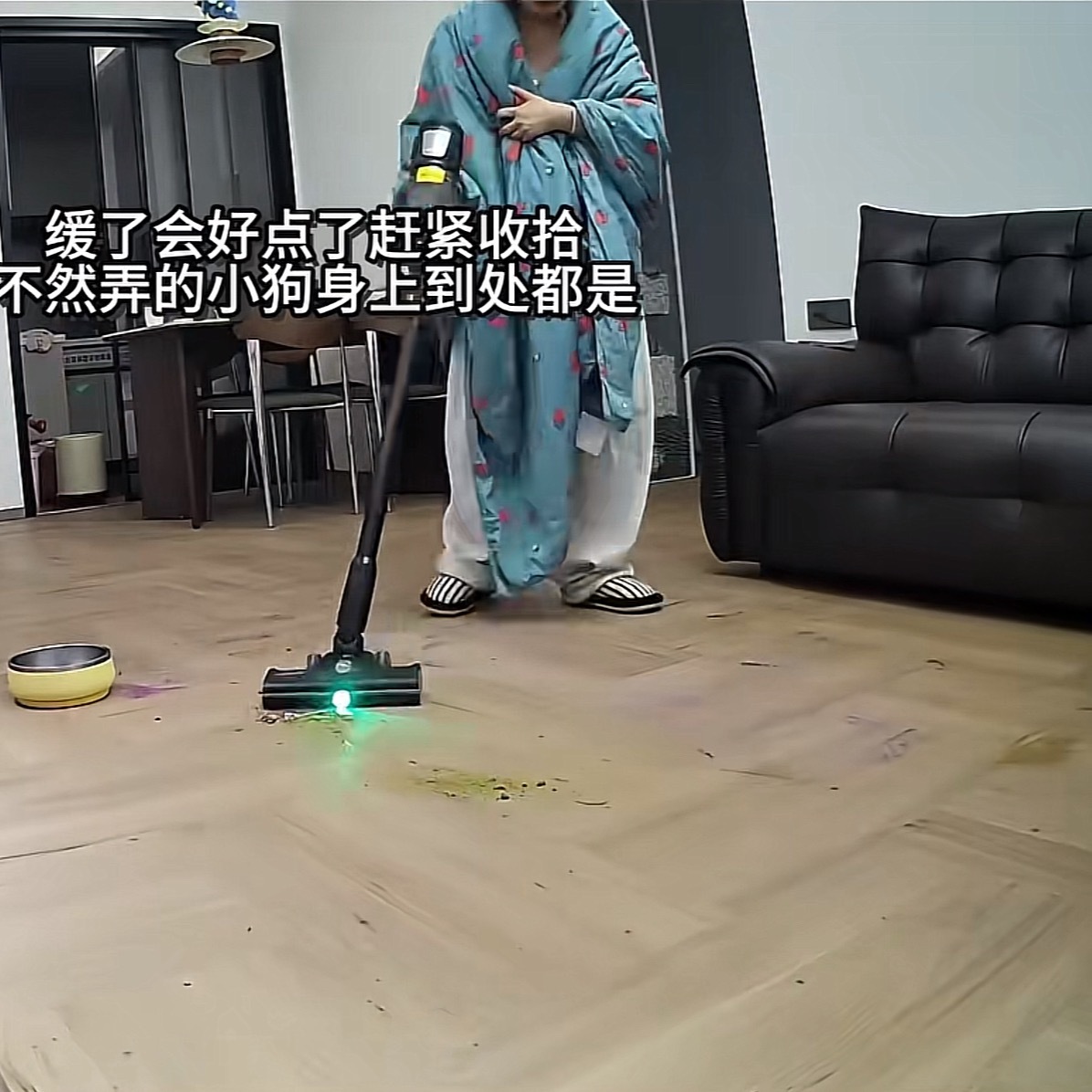 女生甲流高烧狗狗饿得啃面粉看了原视频,摆拍的。后面用吸尘器打扫卫生,然后评论区带货,这是互联网,你们还真信了