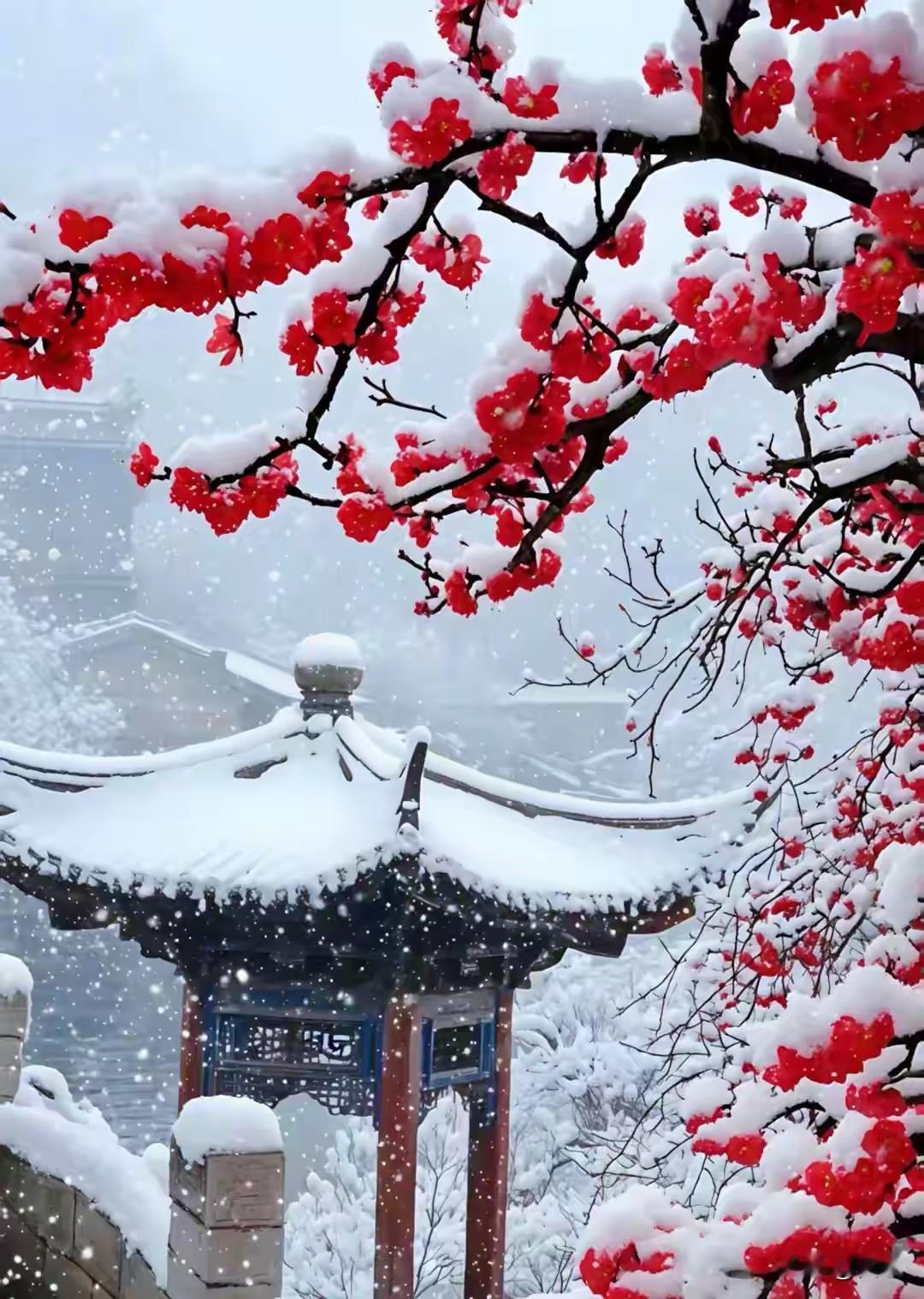 上联:飘飘瑞雪呈佳景 下联:点点红梅映华堂 横批:瑞气盈门