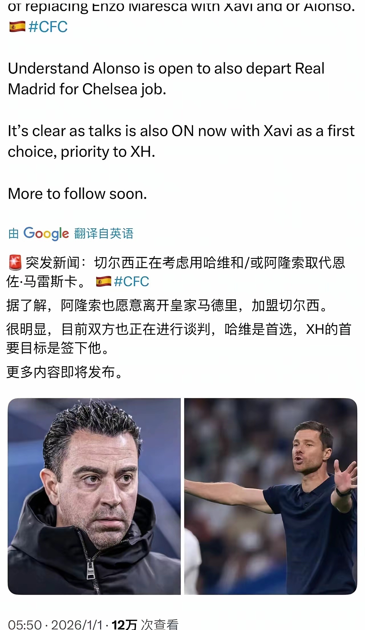 切尔西新帅人选出来啦。哈维有西甲冠军,阿隆索有德甲冠军。切尔西就是想要英超冠军,谁能拿到呢?我感觉阿隆索在皇马还没下课呢