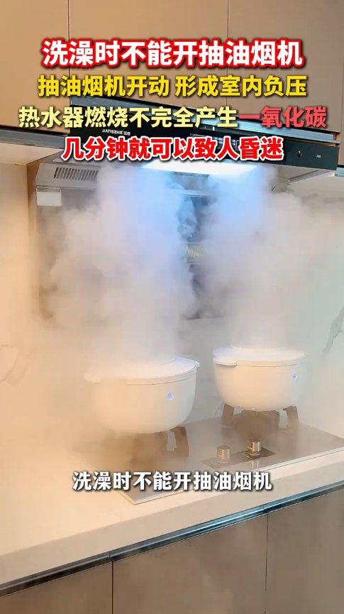 “悲剧还是发生了!”广东广州,一对夫妻洗澡时,把门窗全都关上了,而为了快速把浴室里的水蒸气排出去,还特地打开了厨房的抽烟机,结果没多久,二人就头晕、恶心!送医后确诊为一氧化碳中毒。网友:洗澡时不能开抽烟机? 广州一对新婚夫妻上周洗澡时双双晕倒,后来才发现是开错了开关,他们家厨房和浴室连着,热水器是燃气的,丈夫想快点散掉水汽。 就把厨房的抽油烟机打开了,结果洗完澡没多久,两人就头晕得站不住,差点出大事。 抽油烟机一开,空气往外抽,可浴室门窗全关着,外面的新鲜空气进不来,燃气烧得不彻底,一氧化碳就被吸进来了,越抽越往里灌,危险就跟着来了。 医生后来说,很多人以为开抽油烟机就是在通风,其实它抽的是厨房里的空气,这样浴室就容易变成负压,老式燃气热水器烧火得靠氧气,门窗一关紧,氧气不够用,废气排不出去,反而往回倒。 现在回想起来,开抽油烟机再关上门洗澡,真是两件事凑一块,危险加倍。 我身边不少朋友家厨房和浴室挨着,看了这新闻我赶紧提醒他们别学那对夫妻,正确的做法就是开排气扇或者留条缝透透气,洗澡时间长了更得注意,冬天再冷,命比热水重要,这道理谁都懂。