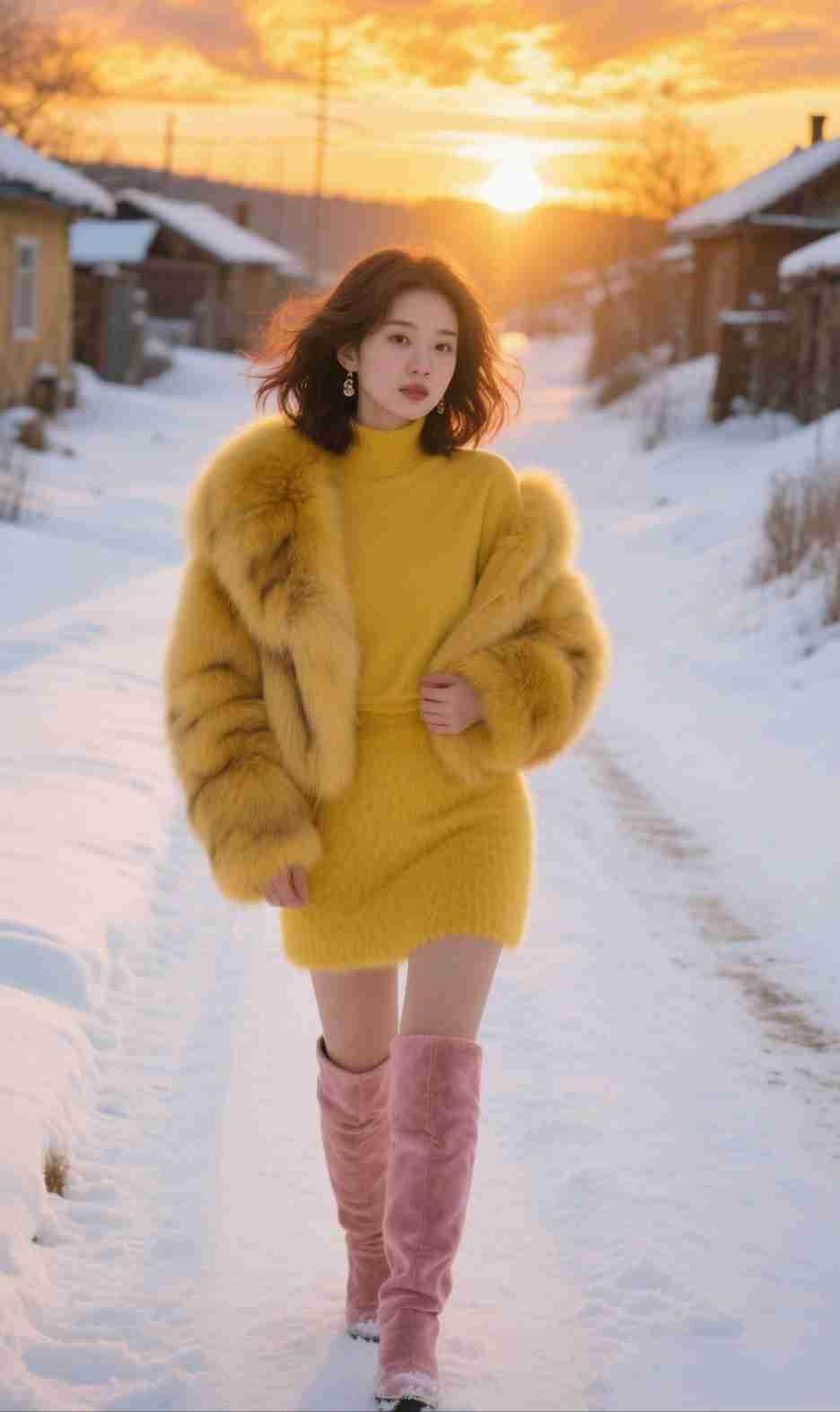 我的今日状态:😁轻松愉快 我这里的天气:❄️下雪 《雪径鎏光》 金裘裹雪踏寒行, 落日熔金染鬓轻。 粉靴点破银沙色, 一抹明黄映晚晴。 赏析:这首诗精准抓取画面的视觉冲突与氛围:首句“金裘裹雪”将黄色皮草与雪地的冷白形成强烈色彩对比,“踏寒行”还原人物行走的动态;次句“落日熔金”描摹夕阳的暖光质感,“染鬓轻”添上光影拂过发丝的细腻画面。后两句以“粉靴点破银沙色”写粉色长靴在白雪上的灵动,“明黄映晚晴”则把黄色衣装与落日晚霞相融,冷暖色调交织,既勾勒出雪天黄昏的清冷背景,又凸显出人物造型的明艳鲜活,让画面的层次感与氛围感跃然纸上。 冬日生活打卡 冬日生活日常 冬日生活记录 冬日记录心情 冬日自拍 冬日雪景自拍 冬日晒图 一身旧雪 雪落诗里 霜雪出门 银诗一首 踏莎行.冬景 下雪的山行 霜雪吟
