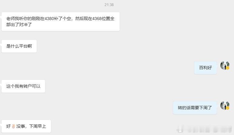 只要你来问,那么我一定会给到你合适的建议!这位朋友在4360的空成功解套!虽然说不完美解但对冲下来也算是无损跑路!为什么这么多人选择明河,因为不但有实力,也有着责任心!黄金金价
