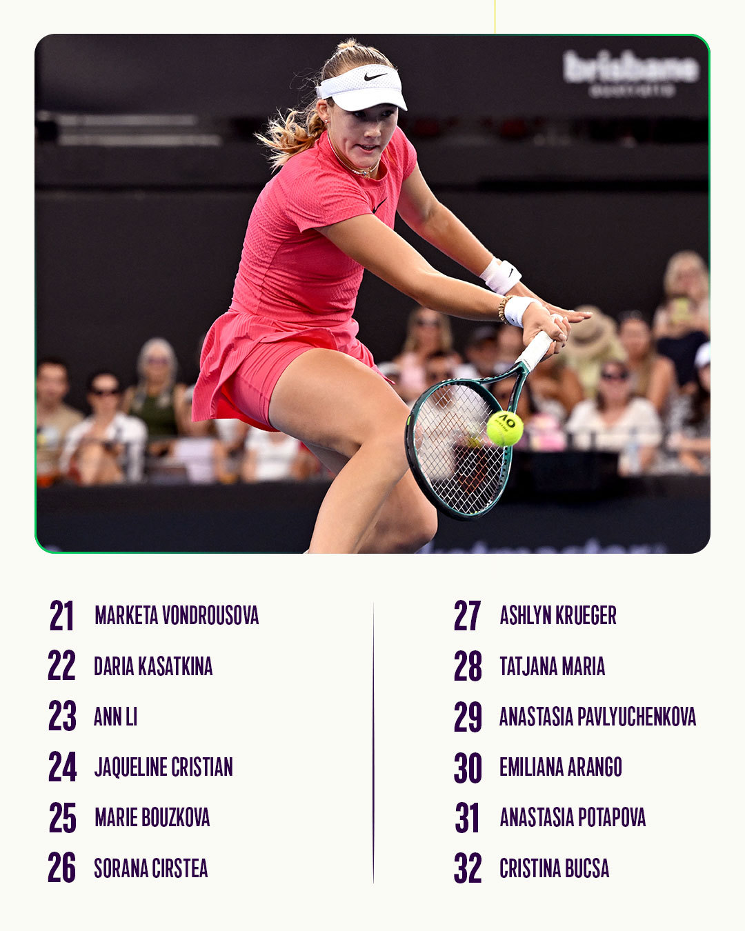 来看看哪些球员会在布里斯班开启新赛季吧!🔛正赛签表将在明天公布🧐