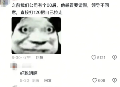 之前我们公司有个00后,他感冒要请假,领导不同意,直接打120把自己拉走