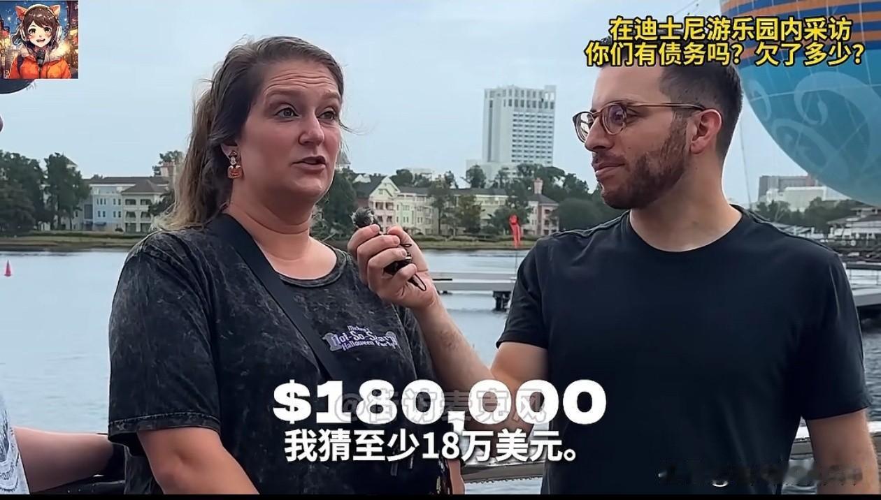 美国大V探秘美国斩杀线,他选择了最直接的一种方式去当地的迪士尼乐园采访路人。 他的选择是基于,能进迪士尼的至少没有斩杀线的风险。结果采访结果让其大吃一惊。 第一位女性受访者有 10 万美元学生贷款,加上其他债务(如医疗、信用卡等),总计约 12.8 万美元,她计划通过多上班、多存钱来还债。与她同行的男性受访者在读研究生,有 3.5 万美元左右的学生贷款和 1000 美元信用卡债务,总计约 3.6 万到 4 万美元,他也打算通过努力工作、存钱来偿还。 这里戳破了一个假象——美国人不爱存钱,相反是一屁股饥荒,要努力工作。 第二组的男性受访者有信用卡和车贷,总计约 6 万美元;女性受访者有 7.5 万美元债务,其中包含 10 万美元学生贷款,所有债务加起来至少 18 万美元。 他们的债务当中,学生贷成了大头。结合美国推行的快乐教育,我有理由相信,快乐教育和学生贷有着必然的联系,当你上小学、上中学都觉得晃悠晃悠就能毕业的时候,那么你对大学必然是有想法的,这个时候触手可及的学生贷,再加上一颗被快乐教育降智的大脑,绝对会开启享受之旅。 第一组中,女大学生毕业没多久,12.8万美元的饥荒。但第二组中已经就业的中年女性,她的债务已经来到了18万美元。 这意味着,即使她找到工作,她的债务也不会像他们想象中的那样一点点减少,甚至有可能会继续增加。而很多美国人得益于快乐教育,他们根本不会算账。