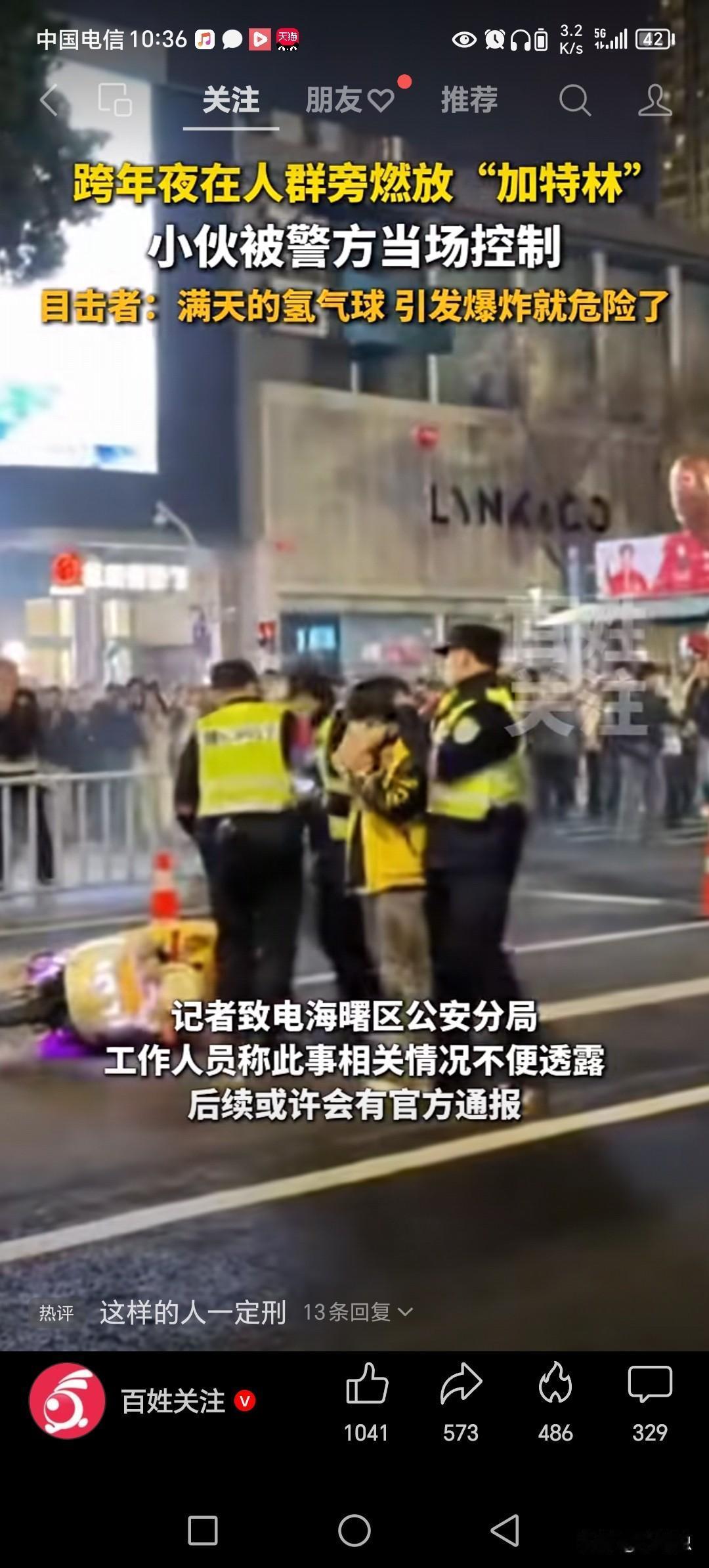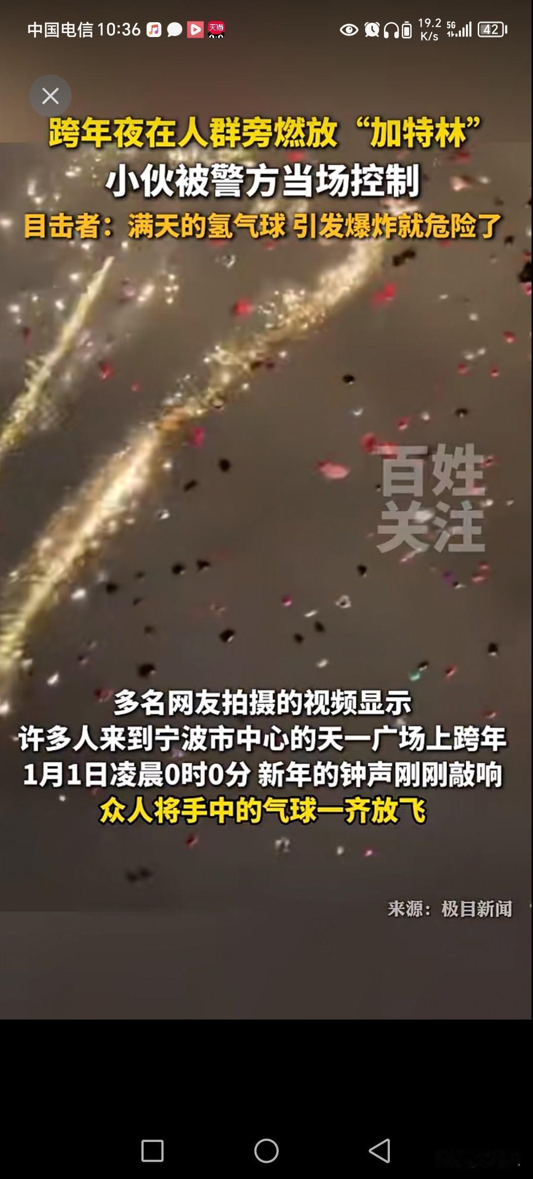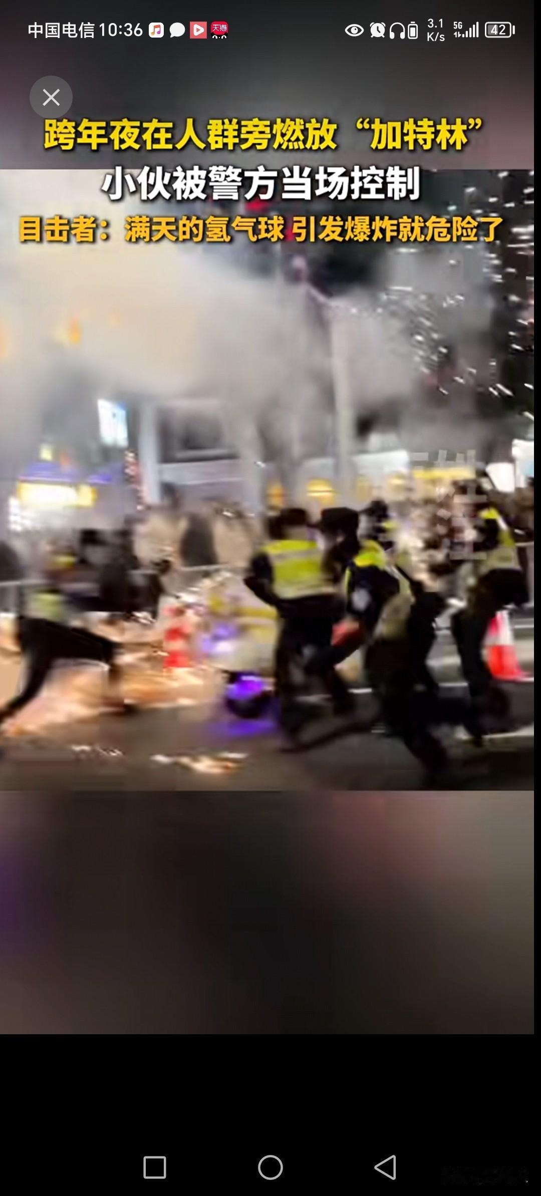 一群小伙子放烟花,在跨年被抓了。 为什么会被抓了,本来往年放烟花没事。 但现在跨年分两帮,一帮人比较传统爱放烟花,趁着跨年,用加特林横扫天空。 另一帮女性,放气球。 他们时间几乎一致,地点也一致。 碰到一起,如果加特林打打到气球。 在空中要爆炸,所以根源抓起。 抓放加特林的小伙子。 有加特林就没有气球,有气球就没有加特林。 你觉得跨年放什么比较合适。