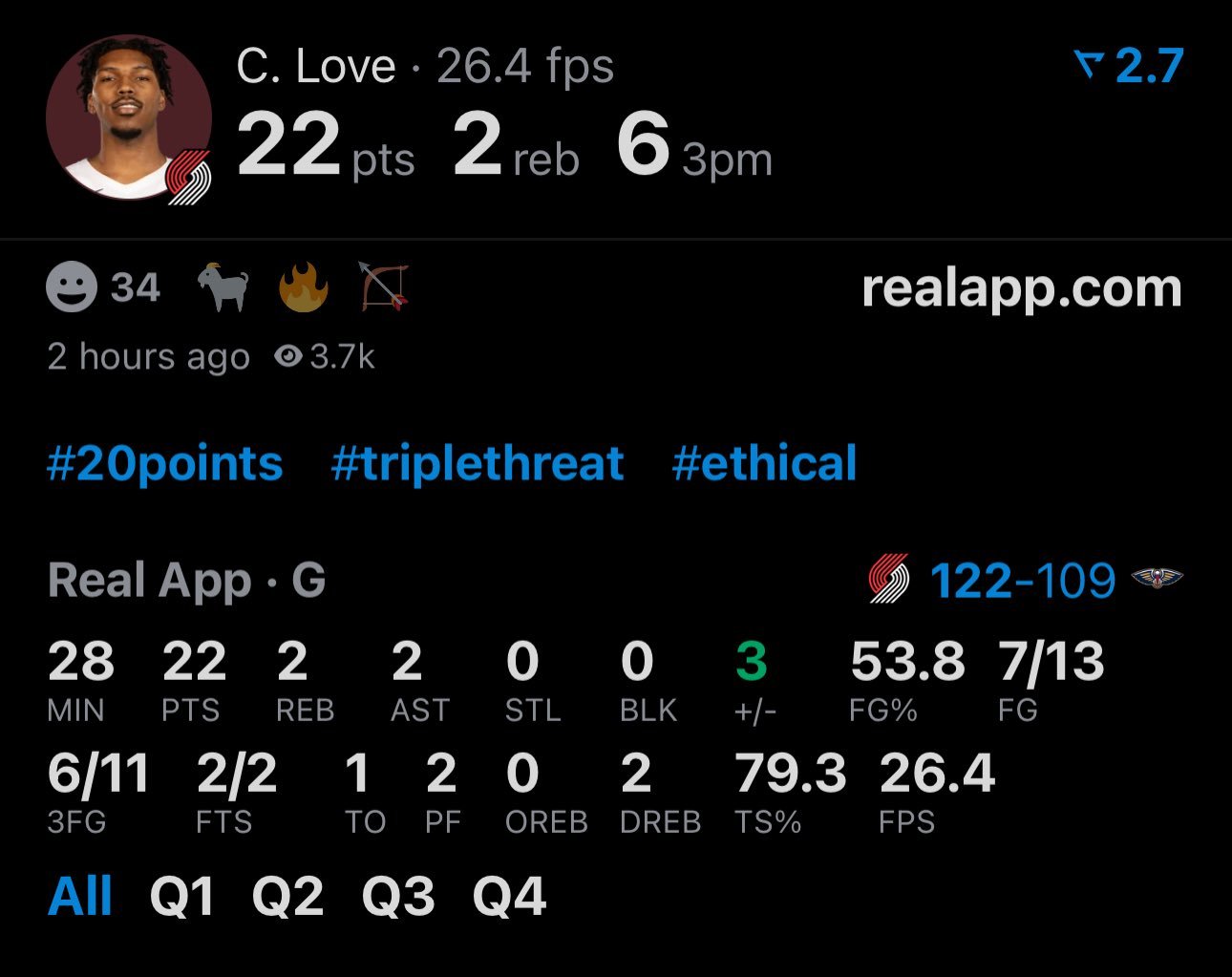 愈发自信了,乐福今天扔进6个三分,再次得分上20+,开拓者替补最重要的输出。又是为斯普利特出生入死的一天