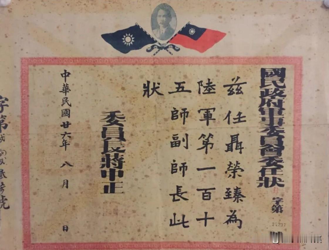 1937年8月,由国民政府军事委员会颁发,任命聂荣臻为国民革命军第八路军第115师副师长的正式文件。 对于聂荣臻本人而言,这份委任状具有特殊的历史意义。聂荣臻1925年从苏联回国后曾在黄埔军校任政治教官,与蒋介石有过交集。1927年蒋介石发动“四一二”政变后,聂荣臻与蒋介石分属敌对阵营,在十年内战中多次交锋。 聂荣臻对此持“形式接受、实质独立”的态度——在组织上接受国民政府军事委员会的番号,但在军事指挥、政治工作、根据地建设等方面完全保持独立自主。