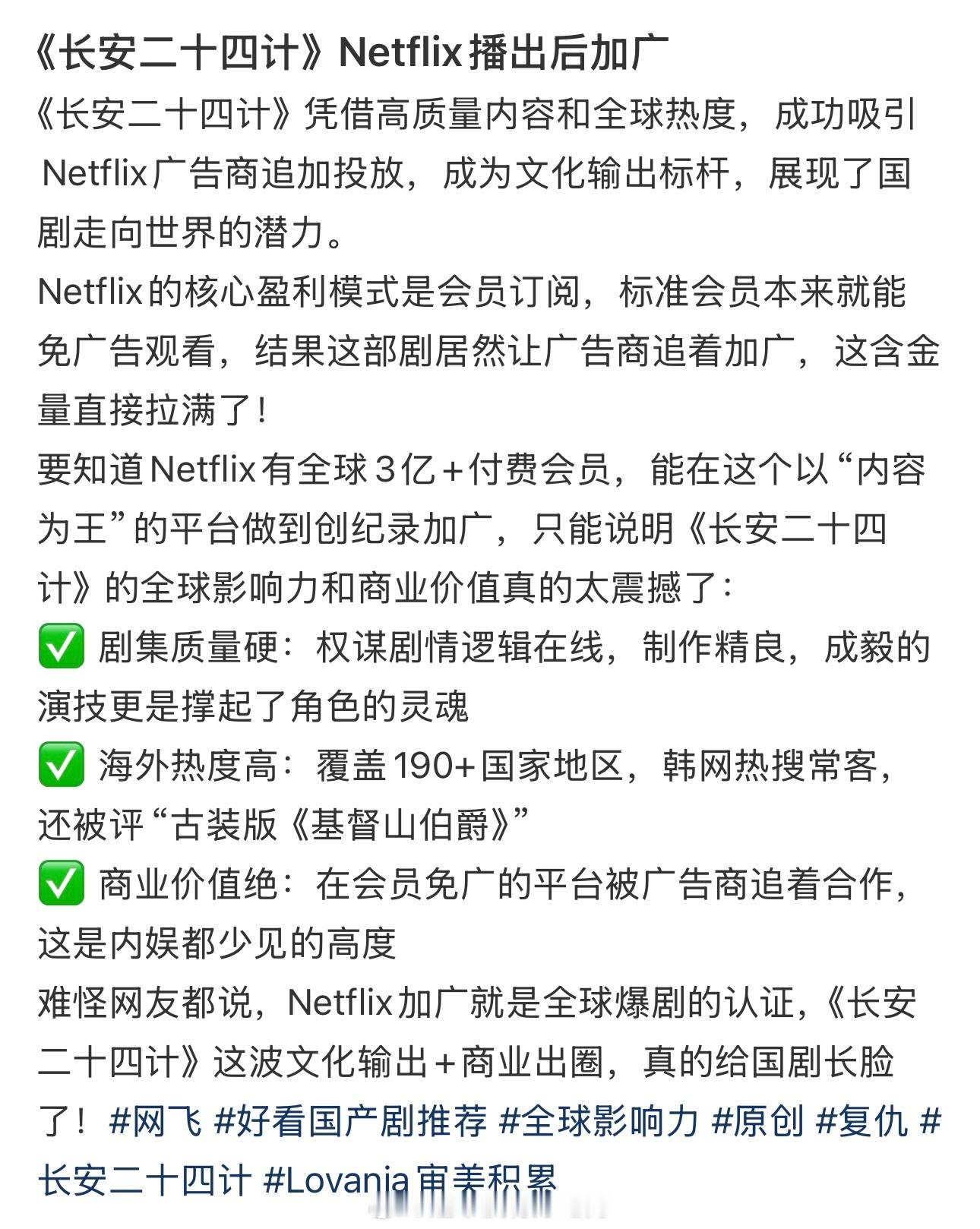 从Netflix加广看长安二十四计的顶级商业价值和影响力成毅长安二十四计国剧之光🔥