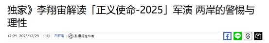 “统一时钟”正在倒数!2025年12月29日,台前情报头子看军演:两岸终局是和统!美航母进台海的时代已过去! 台湾问题一直都是我国主要的内政问题,近年来却频繁遭到其他国家的干涉,尤其是以美国为主的西方国家。 就在最近这段时间,先是日本,紧跟着是美国等一些国家严重干涉台湾问题。在很大程度上,鼓舞了台独分子继续搞分裂行径。 针对这一情况,我国选择在2025年年末对台举行了军事演习。这次的军事演习相比较之前的几场军事演习,规模要更加的盛大。所以当军事演习举行之后,台湾岛内的各领域专家纷纷进行了解读。 就在2025年12月29日的时候,“台前陆军司令”,“国安局局长”李翔宙就解读了这次的军事演习。 据他本人表示,大陆采取的这场军事演习,再次将台海局势推向了国际关注的焦点。并强调这场军事演习在很大程度上反映出了,大陆在台湾问题上“日益复杂的战略考量”。 对于这次的军事演习,我国的目的非常明确。一是回应台湾内部的政治动态,向台独分子发出警告。二是向国际社会发出警告,不要试图干涉中国的内政问题。 李翔宙在解读这场军事演习的时候,抛出了很多重要的观点,例如就包括两岸中局是和统。在大陆举行军事演习之后,台独分子出现了明显的恐慌情况。台独分子之所以会自乱阵脚,主要原因之一就是美国航母进入台海的时代已经过去。 当下的台湾没有实力去搞独立,美国更没有办法略过中国去支持台独分子,毕竟中国的军事实力摆在了国际面前。对此,您怎么看? (信息来源:独家》李翔宙解读「正义使命-2025」军演 两岸的警惕与理性-中时新闻网)