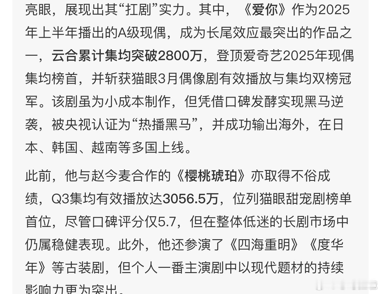 张凌赫作为内娱90后颜值担当,为什么电视剧不火呢?网上他的颜值是受认可的,隔三差五都能靠脸上热搜,跨年夜又是男模又是内娱顶帅的,可奇怪的是他的电视剧并不火