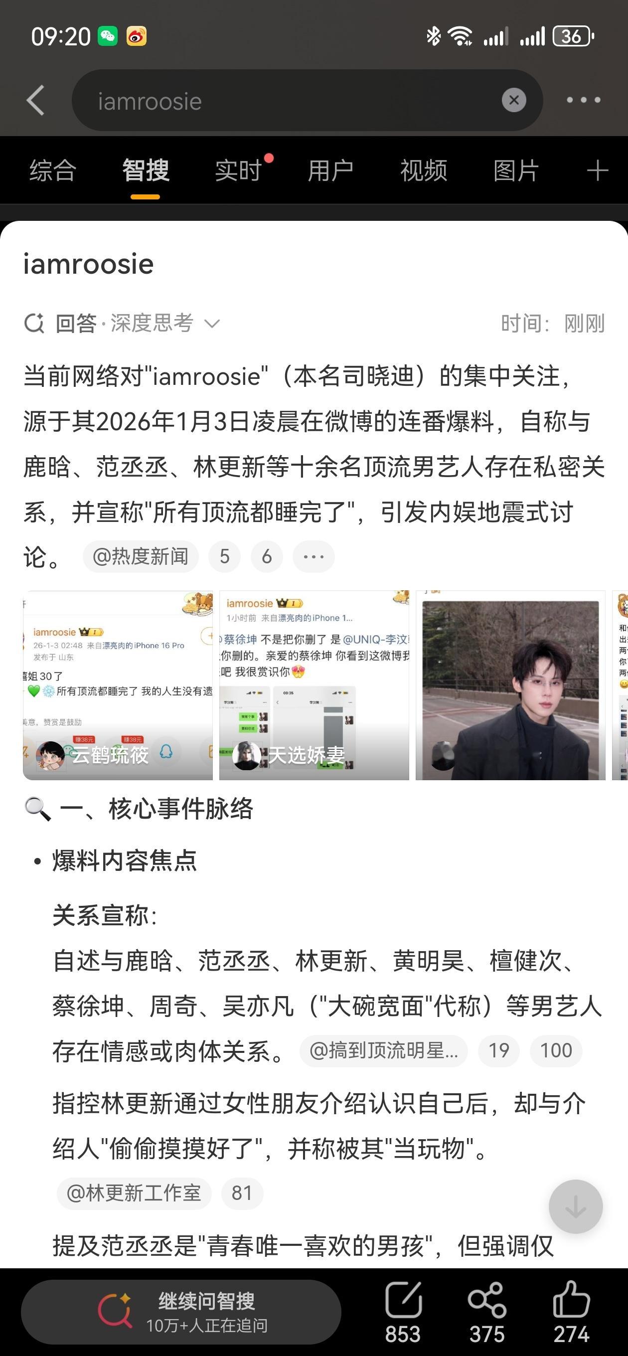 iamroosie 2026年破天荒的大瓜来了!这位博主不知道什么来路,应该长得貌似天仙吧,能这样说,“所有顶流都睡了”,还是她只是瞎说造话题呢?看到各工作室也出来声明了,让子弹再飞一下看看吧。iamroosie