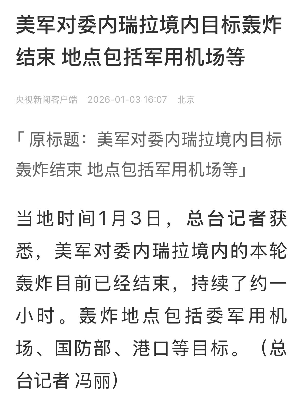 一直以为委内瑞拉是个军事强国,美军才轰炸了一个小时,就结束了,难道委内瑞拉的防空