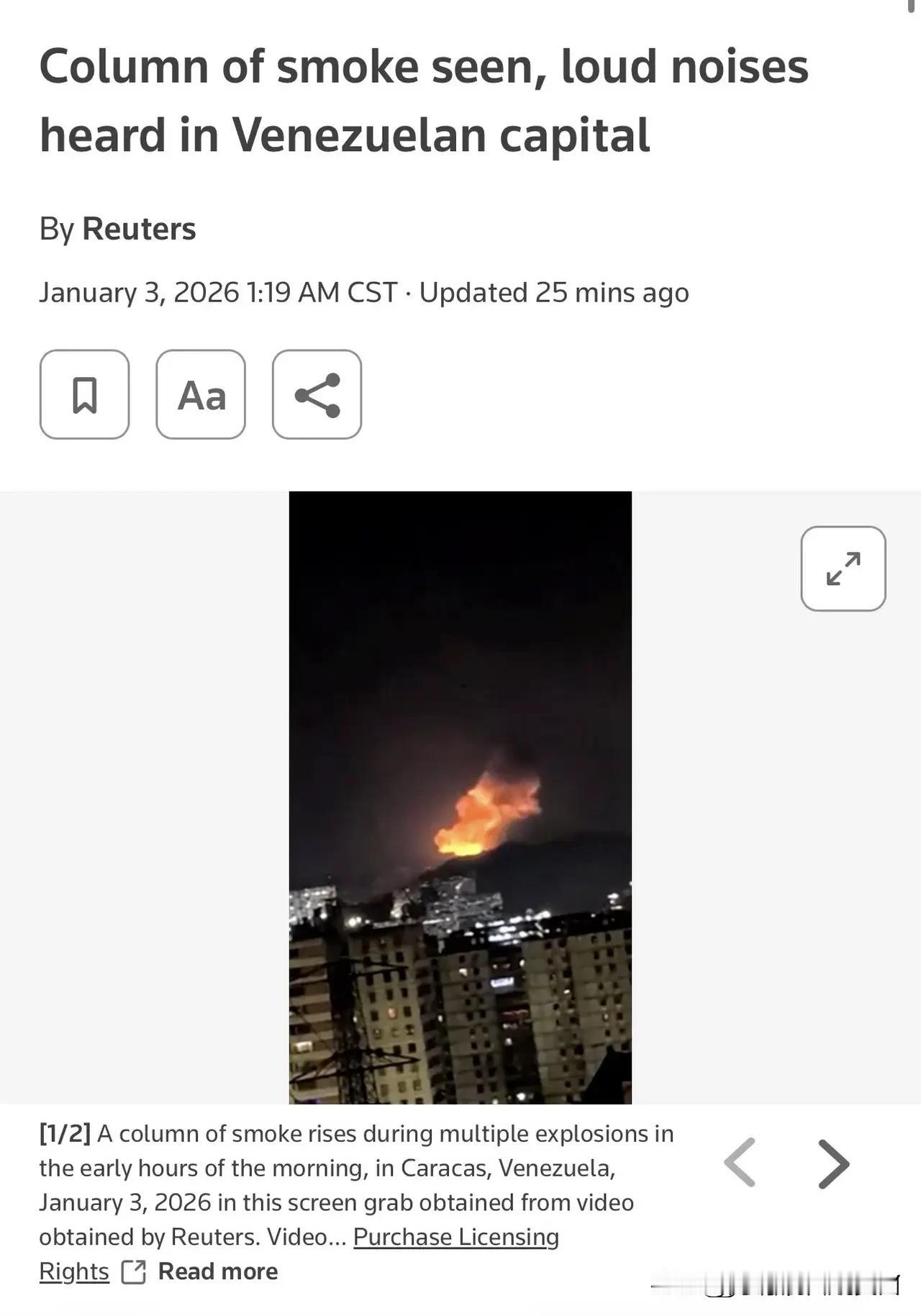 突发新闻:特朗普宣布对委“南方之矛”行动开始。委内瑞拉首都军事目标遭到多点空袭,加拉加斯港一片废墟! 2026年1月3日,新年钟声刚过三天,加拉加斯的夜空就被爆炸撕裂。这不是演习,不是意外,而是特朗普政府对委内瑞拉动真格的信号——美军的打击,已从海上悄然登陆陆地,直插这个南美国家的心脏。 过去几天,美国在加勒比海发起的所谓“南矛行动”还只是外围试探,主要针对海上贩毒通道。可就在1月3日凌晨,委内瑞拉首都加拉加斯接连传出震耳欲聋的爆炸声,火光映红天际。 目击者称,蒂乌纳堡军营等关键军事设施疑似遭袭,全城大范围断电,街道上人群奔逃,哭喊声与警报交织。这不是电影场景,而是活生生的现实。 更令人不安的是,美方已不再遮掩,直接将此次行动定性为“武装冲突”,并宣称打击对象是“与恐怖组织有关联的实体”。一句话,战争的门槛,正在被悄悄跨过。 此前,美国中情局早已出手。MQ-9“死神”无人机多次飞越委内瑞拉西北部海岸线,精准打击沿海的贩毒码头。那些看似隐蔽的走私据点,在高空监视下无所遁形。 可如今,打击目标明显升级——从边缘设施转向首都核心军营。这说明什么?说明华盛顿不再满足于“外科手术式”惩戒,而是试图动摇马杜罗政权的军事根基。 面对突如其来的空袭,马杜罗政府一边紧急调动防空力量,一边释放出罕见的缓和信号。他公开表示愿意就石油出口、禁毒合作等议题与美方展开对话。这姿态,与其说是示弱,不如说是求生。 委内瑞拉经济早已千疮百孔,通胀如脱缰野马,民生凋敝,若再陷入全面战争,恐怕连最后一点秩序都要崩塌。可问题在于,特朗普吃不吃这套? 就在爆炸发生后数小时,美国国务院火速发布全球最高级别安全警告,要求所有驻外公民立即撤离委内瑞拉,尤其避免前往首都及军事敏感区域。 这一动作耐人寻味——它不只是保护侨民,更像是为更大规模军事介入铺路。历史上,每当美国发出此类警告,往往意味着局势即将失控,甚至可能有地面部队介入的预案。 有人会问:美国为何此时动手?表面理由是禁毒、反恐,深层动机却复杂得多。委内瑞拉坐拥全球最大已探明石油储量,长期与俄罗斯、伊朗保持能源合作,是美国在拉美“后院”最不听话的钉子户。 特朗普向来信奉“实力即真理”,在他眼中,马杜罗就是个必须拔除的眼中钉。更何况,2026年是美国中期选举年,对外展示强硬姿态,既能转移国内矛盾,又能巩固保守派选票。打委内瑞拉,成本低、风险可控、政治收益高,何乐不为? 但别忘了,委内瑞拉不是伊拉克,也不是利比亚。它拥有数十万正规军,虽装备老旧,却熟悉地形;它背后站着俄罗斯和伊朗,两国在委设有军事顾问团,甚至部署了部分防空系统。 一旦冲突扩大,极可能引发大国间接对抗。更危险的是,委内瑞拉与哥伦比亚、巴西接壤,战火一旦蔓延,整个南美都将陷入动荡。难民潮、毒品泛滥、恐怖组织趁乱崛起……这些都不是危言耸听。 讽刺的是,美国一面挥舞导弹,一面高喊“民主自由”。可过去二十年,它在中东、北非发动的“民主改造”,哪一次没带来更大混乱? 伊拉克至今未愈,叙利亚满目疮痍,利比亚沦为军阀割据之地。如今又把这套剧本搬到拉美,难道真以为换个舞台就能演好结局?古语有云:“得道多助,失道寡助。”靠武力强推政权更迭,终究不得人心。 更值得警惕的是,这种单边军事行动正在侵蚀国际秩序的根基。联合国宪章明确规定,禁止对他国使用武力,除非自卫或安理会授权。 美国既未遭受攻击,也未获授权,却擅自发动空袭,这与它口口声声维护的“基于规则的国际秩序”背道而驰。长此以往,弱肉强食的丛林法则将彻底取代法治精神,世界将重回弱国任人宰割的黑暗时代。 当然,马杜罗政权自身问题重重。腐败横行,经济治理失败,压制异见,这些都让它失去大量民心。但政权更迭应由委内瑞拉人民自主决定,而非由外国导弹代劳。 外部干涉只会激化矛盾,让反对派失去合法性,反而巩固强硬派地位——这正是过去多次“颜色革命”失败的教训。眼下,局势已站在悬崖边缘。若美方继续升级打击,委方可能被迫反击,哪怕只是象征性的。 一旦有美军人员伤亡,特朗普政府就有了全面开战的借口。而一旦开战,就再难回头。南美洲几十年的相对和平,或将就此终结。 普通人能做什么?或许不多。但至少可以看清真相:所谓“反毒”“反恐”,不过是战争的遮羞布;所谓“民主输出”,往往是灾难的开端。真正的安全,不来自轰炸机,而来自尊重、对话与公平的国际关系。 2026年的第一场爆炸,不该成为新冷战的序曲。世界已经承受不起另一场代理人战争。希望各方冷静,给外交留一条活路。否则,加拉加斯的火光,终将照亮人类理性的废墟。