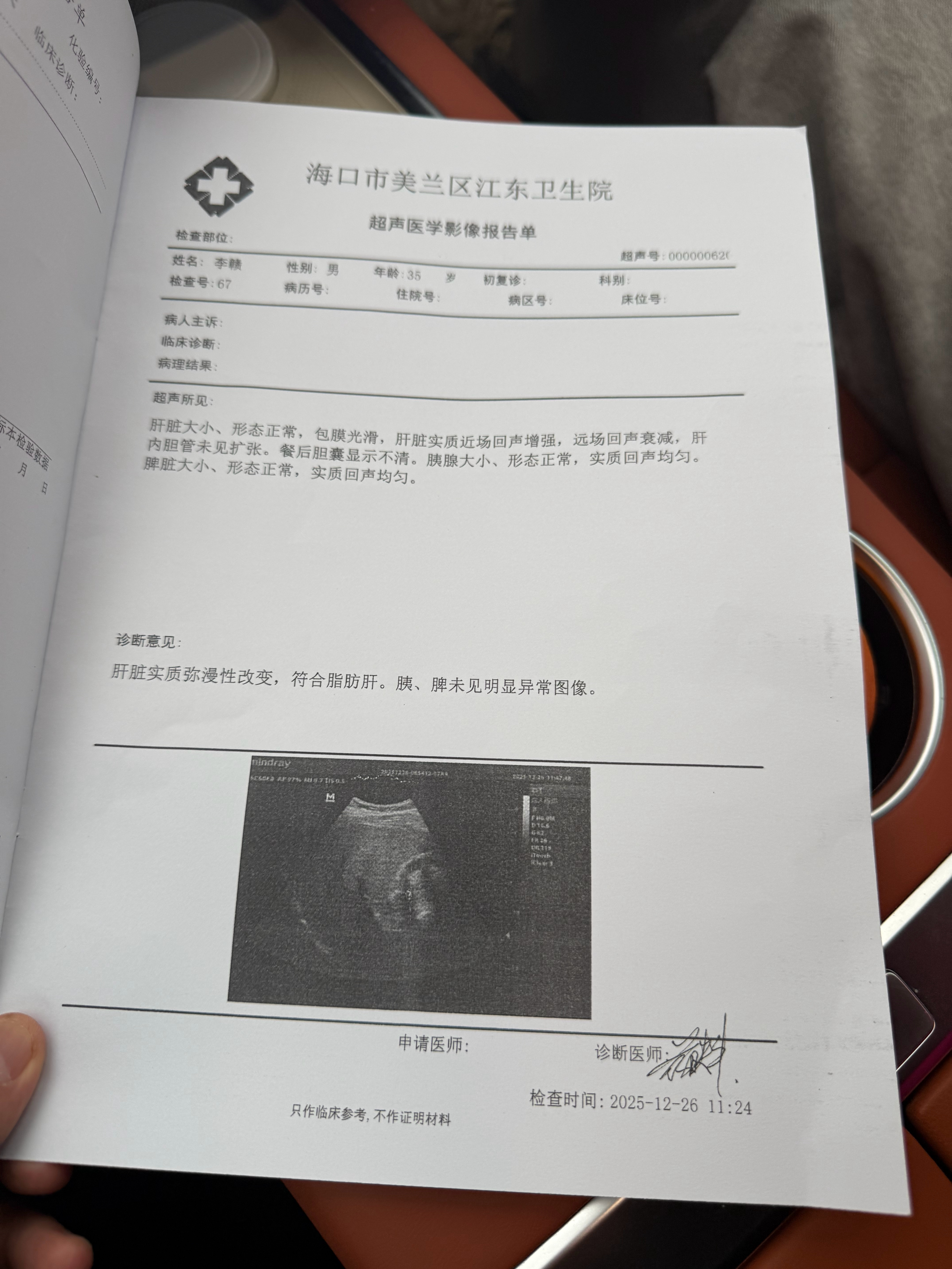 前几天村委会免费体检,我去体检了一下。有彩超有心电图有血液有尿,全部免费,覆盖三高腹部超声心脏超声。中国真的是最伟大的国家,对农村太好了,全部免费,体检全覆盖。村委会福利让我给赶上了。