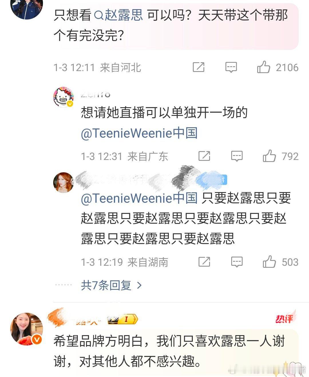 小熊直播活动,品牌方邀请了赵露思以及厚本一起亮相,粉丝拒绝,认为和品牌不搭