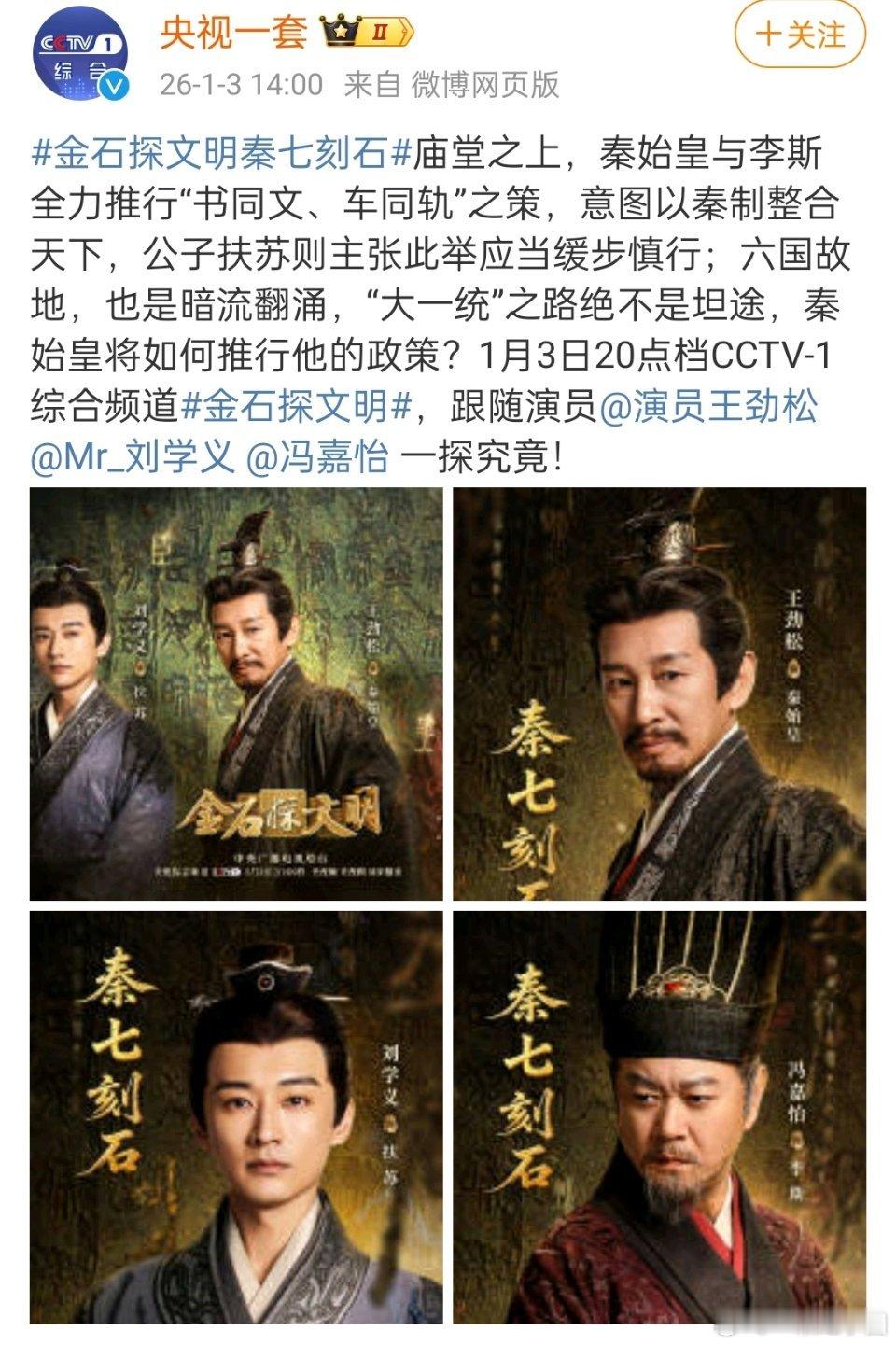 刘学义 的公子扶苏又帅又正!古装正剧既视感!今晚CCTV-1,锁定《金石探文明》
