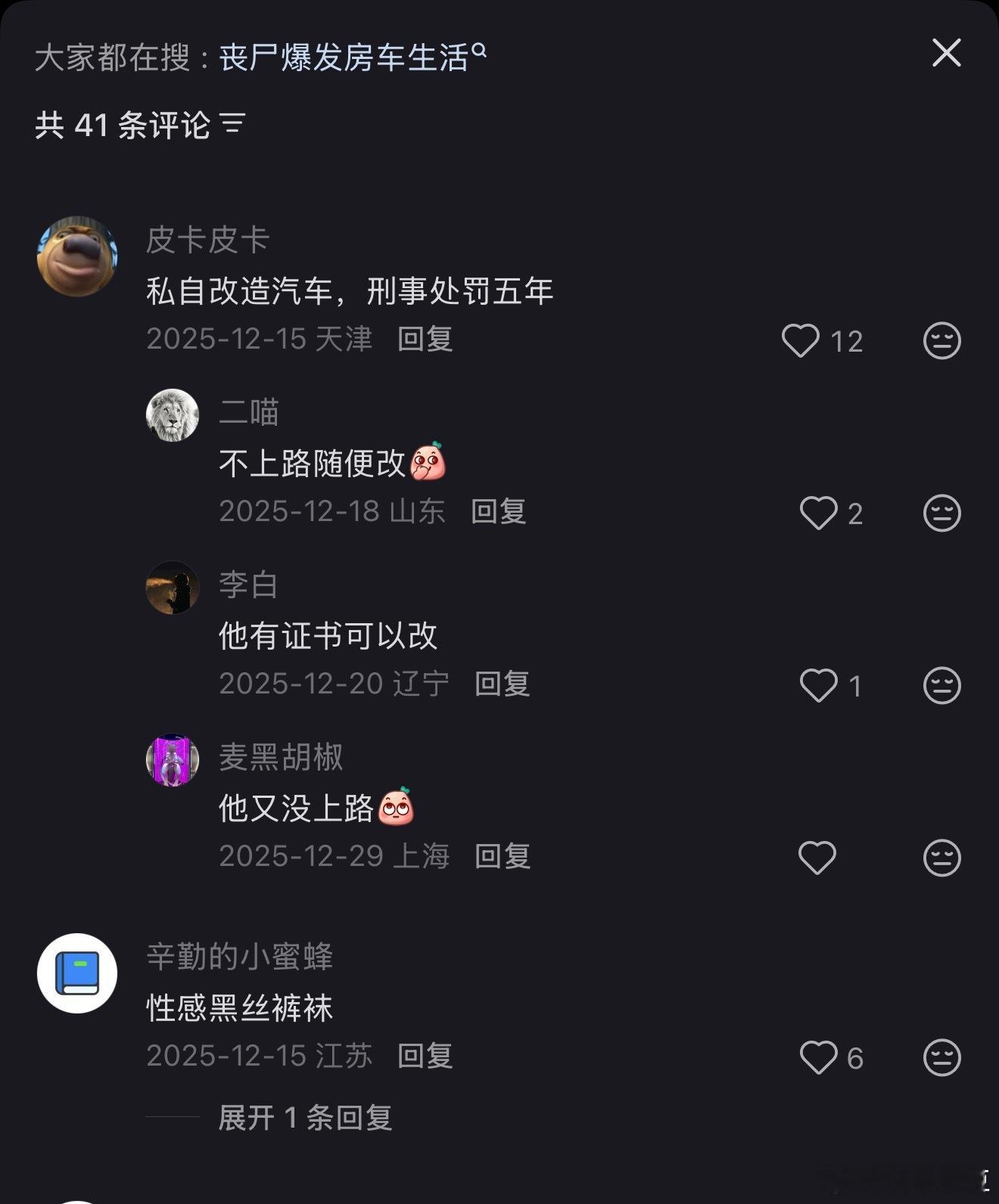 我的小号在小红📚刷到了我大号的“末日战车”然后第一条评论是:私自改造汽车,刑事处罚5年不是哥们……我这车……它上不了路的