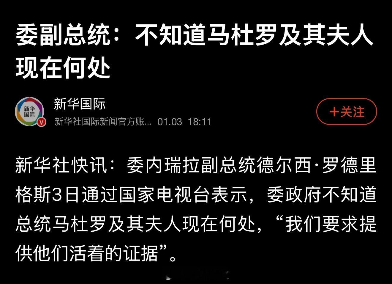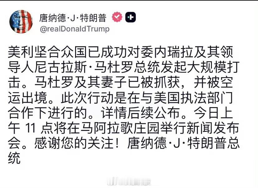 特朗普称已抓获委内瑞拉总统特朗普宣布美军打击了委内瑞拉,并抓获了委总统和夫人委内瑞拉副总统:不知道总统和其夫人身在何处,生死未卜美国这是公开侵略主权国家了吧,下周国际金价又要大涨了啊