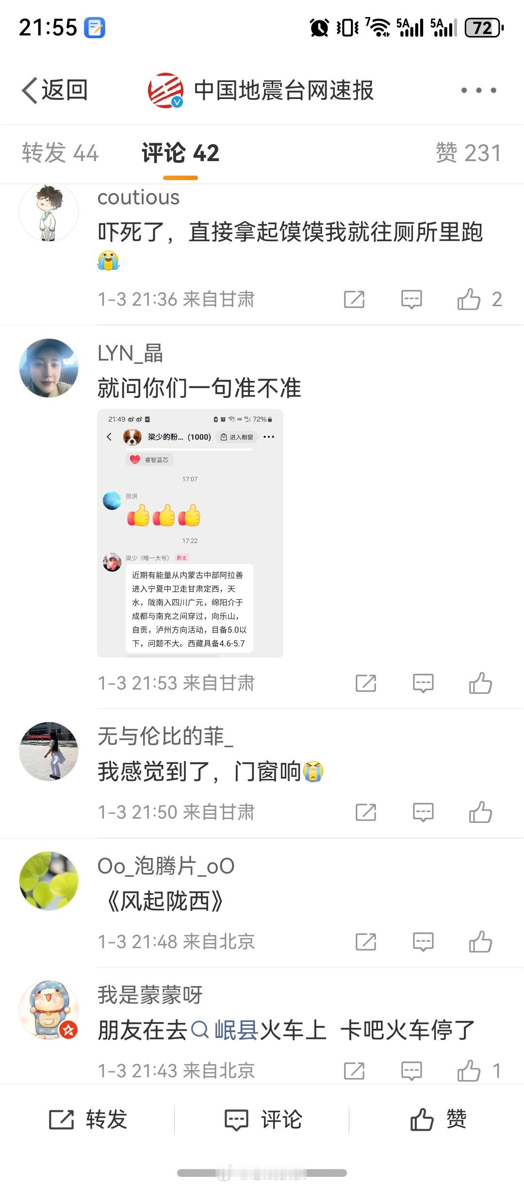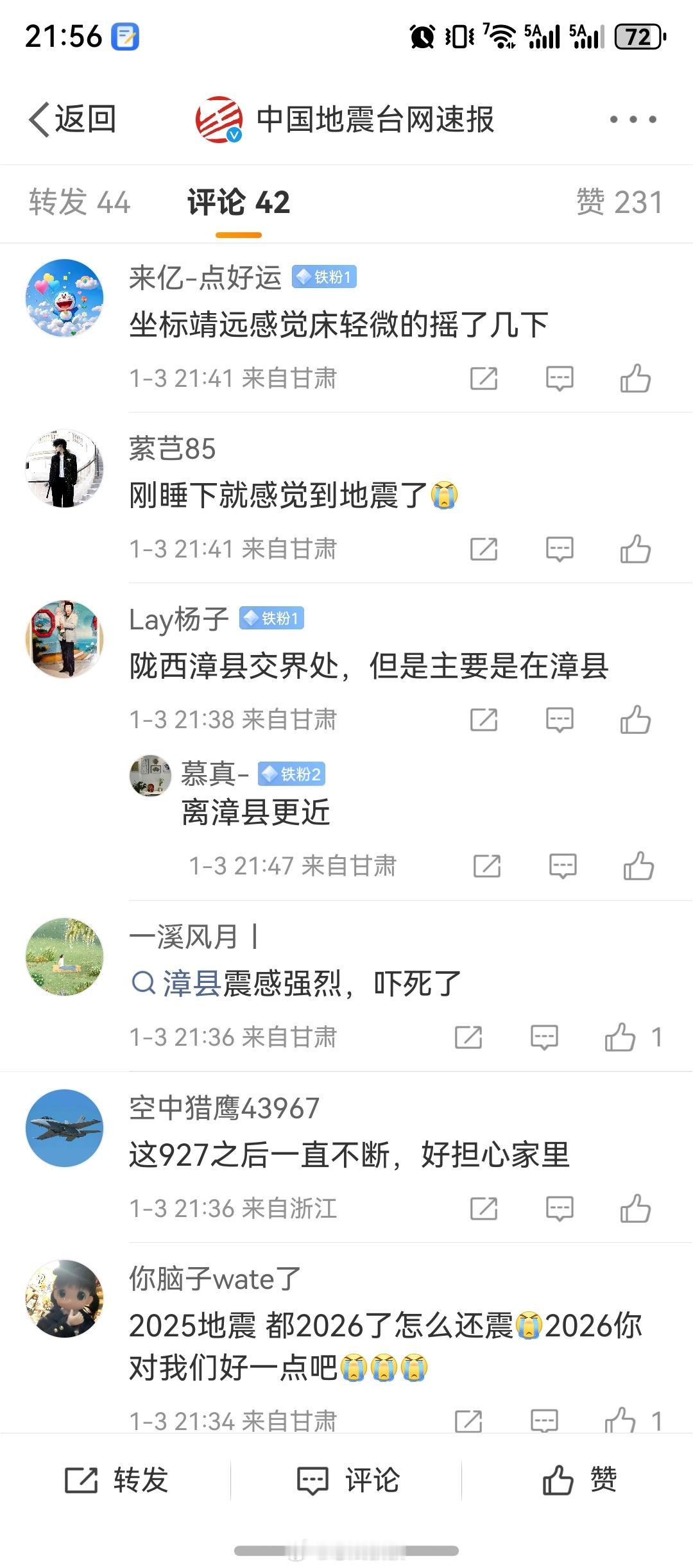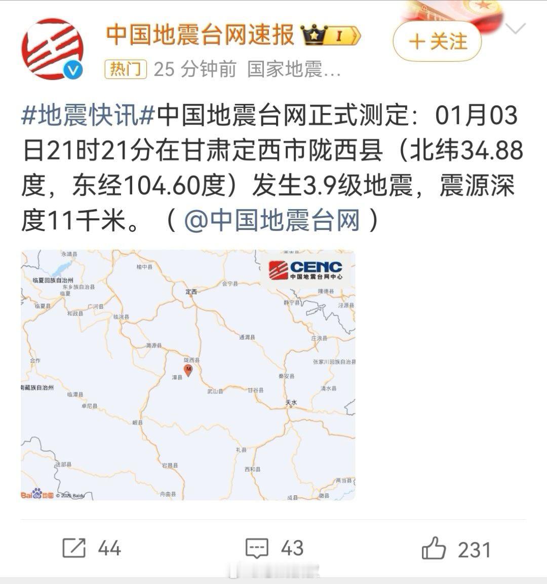 甘肃地震 wc!?不是吧…最近地震感觉有点频繁啊。而且看评论区甘肃IP的朋友留言,感受还挺强烈的还是那句话,希望大家平安,2026开局别那么难 佛山
