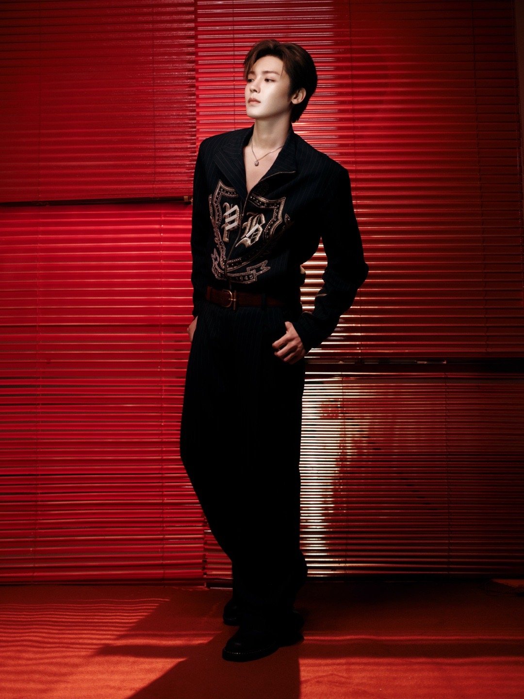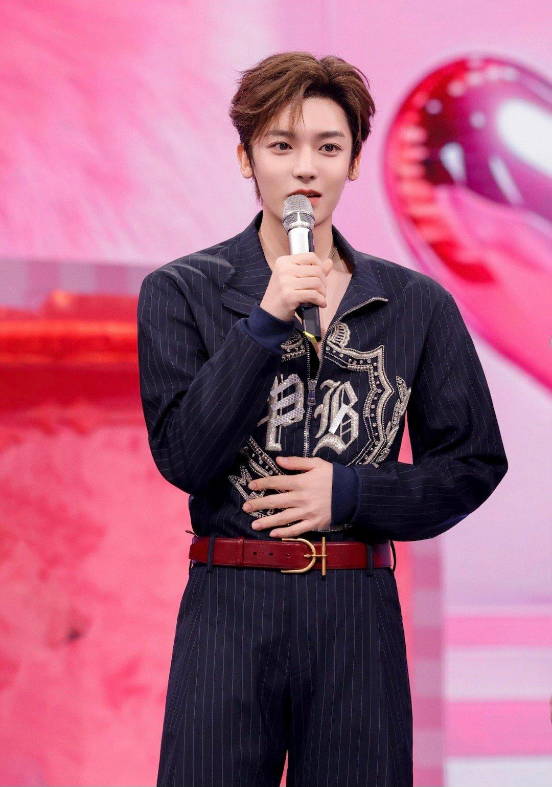 侯明昊今日亮相《hi6你好星期六》节目Look,身着Balmain钻饰盾徽刺绣条纹套装搭配棕色腰带,点缀Celine彩色镂空吊坠项链,精致帅气又时髦喔~