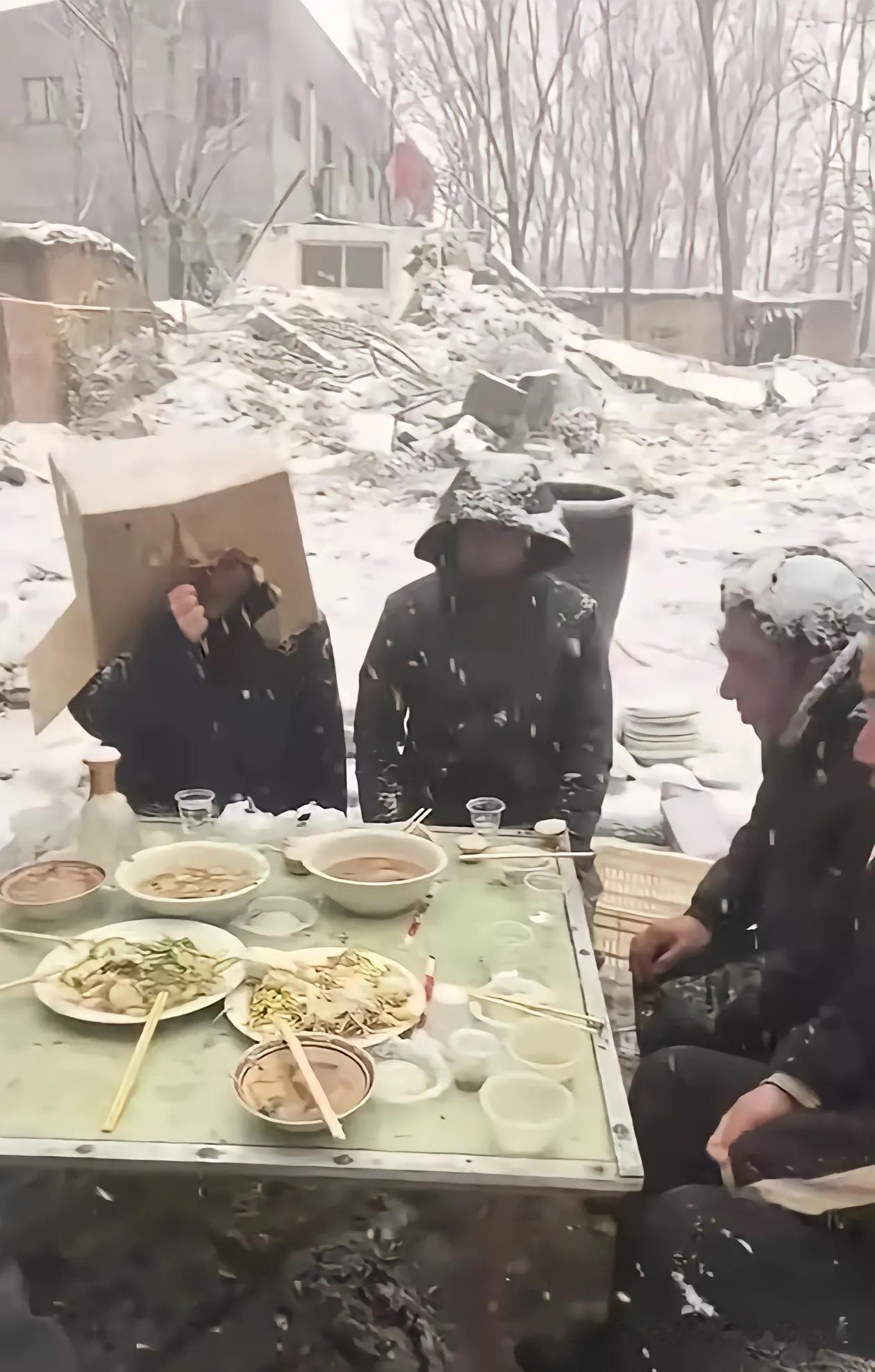 酒席现场!这酒席非要吃吗哈哈哈! 隔着屏幕都替他们冷!大雪都快埋到肩膀了,这酒席愣是吃得热火朝天,主打一个“风雪无阻赴饭局”,我真的想问:这席是非吃不可吗?!雪中吃席 硬核酒席