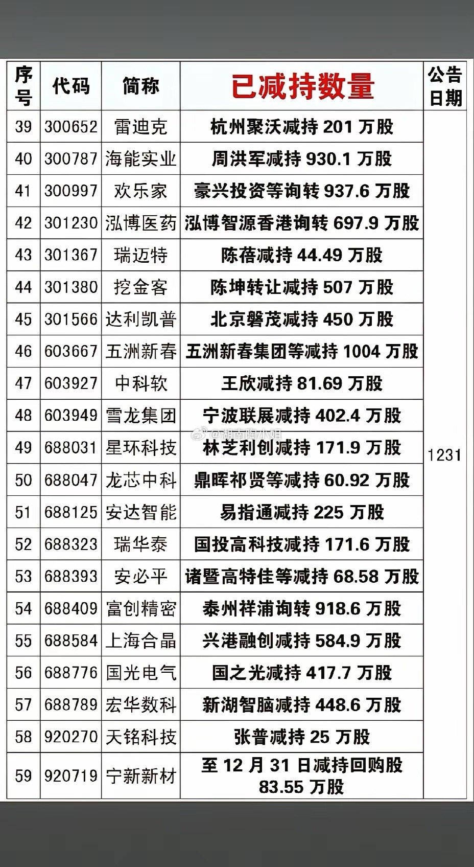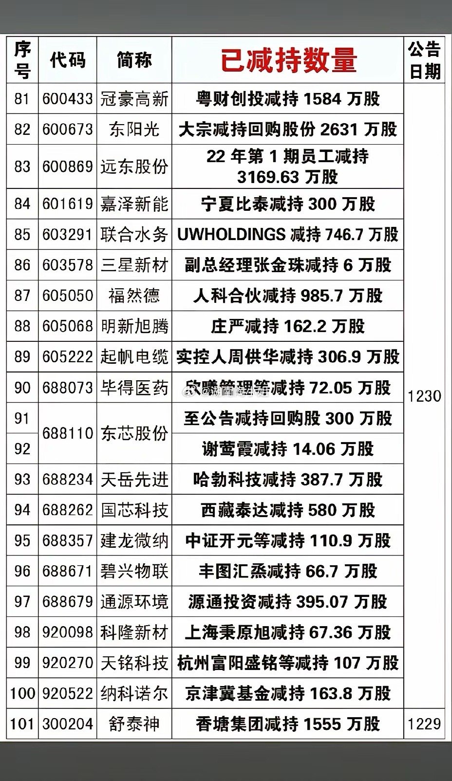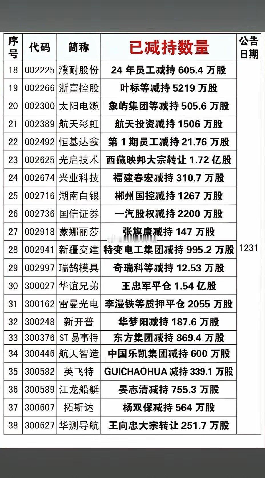 1月3日,节后A股这些股票要远离!!!本周,221家股东实施减持,重点关注:万通控股等平仓万通发展6635.5万股,后市需小心谨慎;宁波人科减持福然德1245.4万股,后市需小心谨慎操作;王忠军平仓华谊兄弟1.54亿股,后市需注意风险!!!