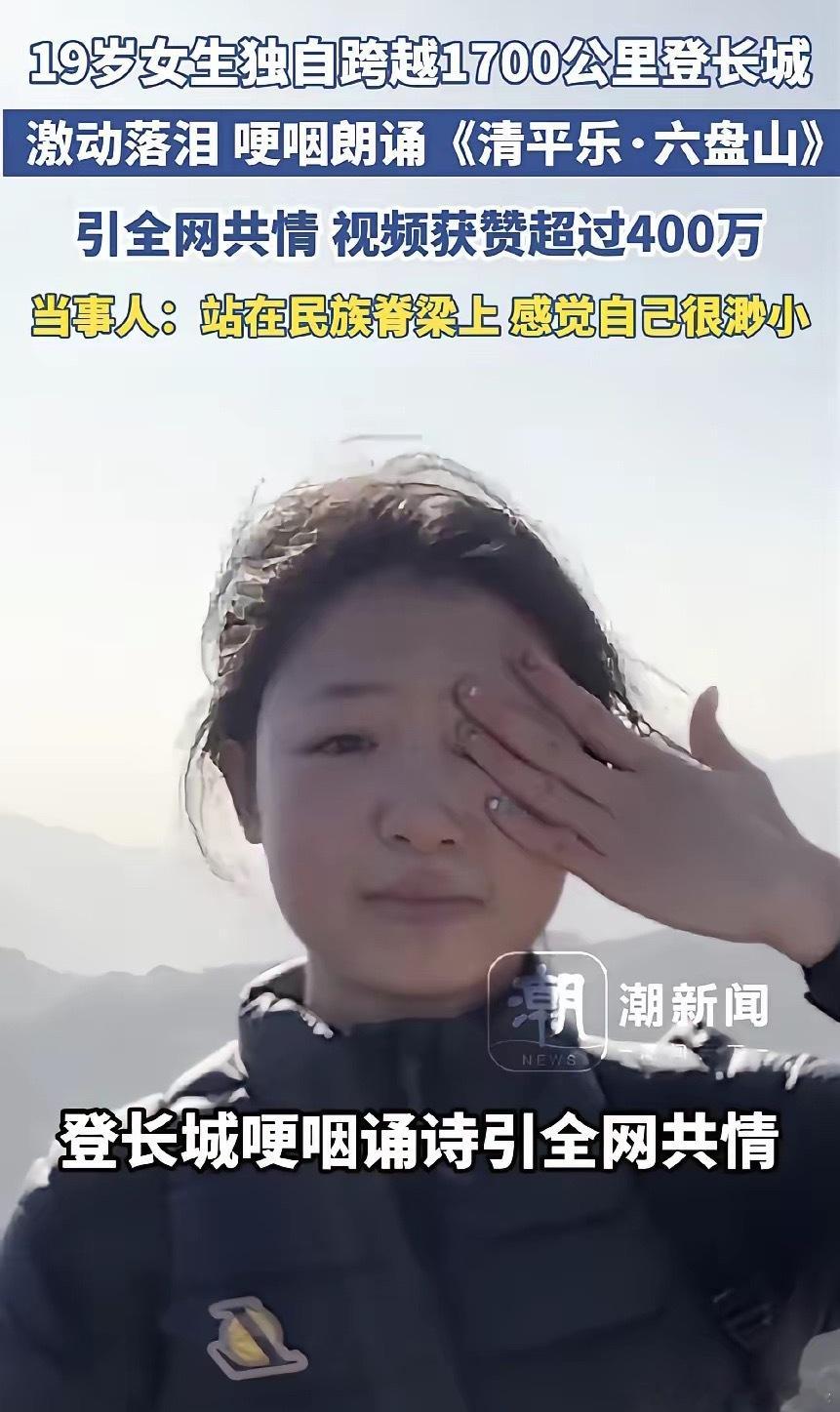 湖南,一19岁女大学生,为了圆梦,孤身一人跨越1700公里,爬上八达岭长城,准备朗诵一首诗纪念一下这次旅程,可没想到,才一开口,她就卡壳了,本以为她是忘词了,但没想到,她只是情绪太激动了,眼泪瞬间夺眶而出,最终,在一众游客的鼓励下,她才强忍眼泪将整首诗朗诵完。2026年元旦,湖南第一师范学院的大四女生陈欣妍,今年刚19岁,学的是体育教育专业。她打小就对“不到长城非好汉”这句话心心念念,作为伟人的校友,更是对八达岭长城充满向往。趁着空闲,她没找同伴,一个人收拾行李,从湖南出发,跨越1700公里直奔北京。坐京张高铁到八达岭长城站下车后,她一路踩着兴奋的脚步往登城口赶。等真正爬上八达岭长城,站在北八楼好汉坡上时,姑娘直接看呆了。连绵起伏的城墙顺着山势蜿蜒,青砖黛瓦间全是历史的厚重感,风一吹过,仿佛能听见岁月的回声。陈欣妍说,那一刻她被长城的雄伟壮阔狠狠震撼,站在这“民族脊梁”上,觉得自己特别渺小。她想给这次旅程留个纪念,决定录制一段朗诵《清平乐·六盘山》的视频。可第一遍刚开口,情绪就崩了,多年的愿望突然实现,激动得根本念不下去。调整好心态再来一次,刚说出“天高”两个字,眼泪就不受控制地往下掉,声音也跟着哽咽。没想到的是,当她念到“不到长城非好汉”时,旁边路过一位陌生大哥,下意识接了句“屈指行程二万”。这突如其来的呼应,让陈欣妍心里一暖,眼泪掉得更凶,却硬是稳住情绪,把整首词朗诵完毕。她把这段没加滤镜、没剪片段的视频,用网名“羊驼同学(健身版)”发到网上,本来只是想记录心情。结果第二天一睁眼,彻底傻眼了——视频点赞量暴涨,很快就突破380万,最后直奔400万+。评论区里全是共鸣,有人说“诗里的山河太辽阔,单薄的身体一时装不下”,还有人说“路人那句呼应,像隔空传来的温暖拥抱”。陈欣妍自己都没想到,一次即兴的情感流露,能引发这么多人的共情。她坦言,从来没被这么多人关注过,又感动又意外,还说以后会带着长城精神好好走人生路。更让人暖心的是,八达岭文旅集团很快就注意到了这个姑娘。他们没有趁机搞营销、推套餐,反而直接向陈欣妍和她的亲友发出邀请,盼着她能再游长城。同时还喊出,欢迎所有“陈欣妍们”来这里,抒发对祖国山河的热爱。现在长城上已经有不少游客跟着自发朗诵爱国诗词,景区也说会加强服务保障,让这份爱国情怀能被“沉浸式”点燃。网友们的评论更是走心:“城墙本来是散落的石头,因为共同的信念才成了民族脊梁,这姑娘的眼泪里,全是年轻人的赤诚。”“不是表演,不是炒作,就是最真实的感动,这种不加修饰的家国情怀,比任何华丽的宣传都管用。”“19岁敢一个人跨1700公里追梦,站在长城上哭着念诗,这才是青春该有的样子啊!”“景区的回应太圈粉了,不蹭流量不功利,只是呵护这份纯粹的热爱,这才是文旅该有的温度。”其实,陈欣妍的爆火,是因为她把年轻人对祖国山河的热爱,用最真实的方式表达了出来。没有剧本,没有刻意煽情,只是站在历史的坐标上,流露内心最朴素的情感。而八达岭文旅集团的做法,更给所有景区上了一课——最好的营销,是回应大众的真情实感。他们没有借着热度炒作,而是用温和的邀请,让长城从一个旅游景点,变成了承载家国情怀的情感载体。现在很多人打卡网红景点,忙着摆拍修图,却忘了旅行的本质是感受。陈欣妍的旅程告诉我们,真正能打动人的,永远是发自内心的热爱和真诚。当年轻人愿意为山河奔赴,当景区愿意为情怀护航,这份双向奔赴的温暖,才是最动人的风景。