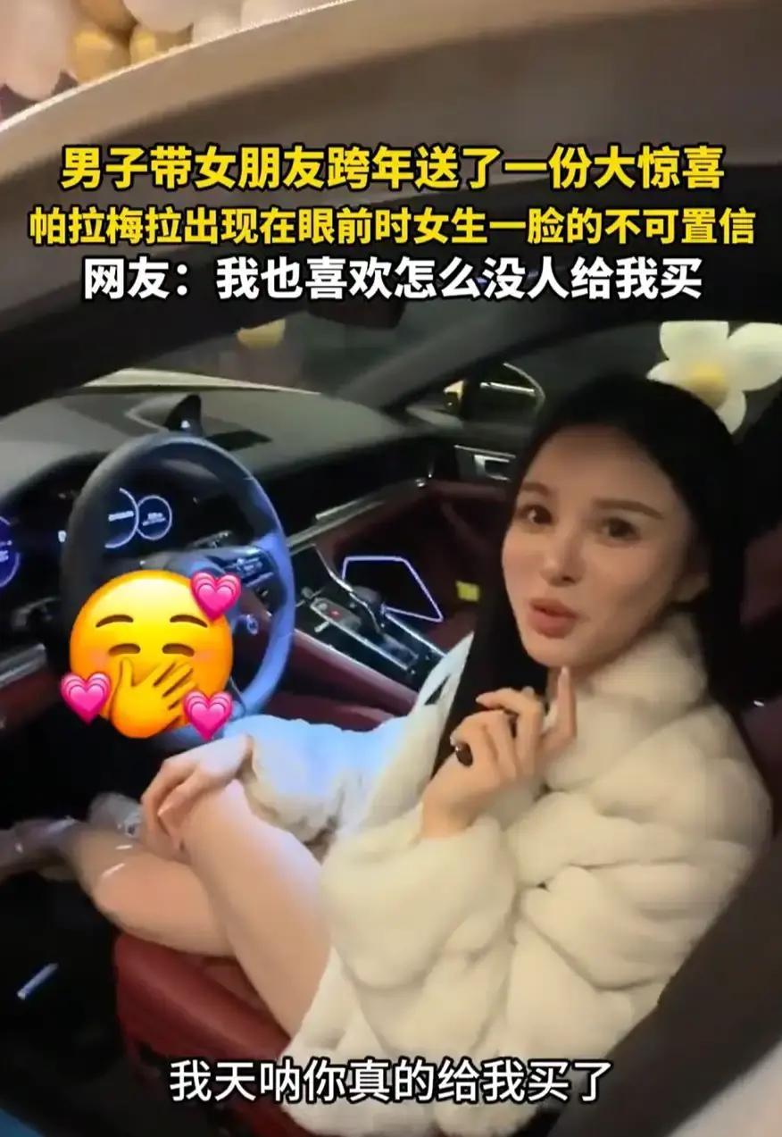 跨年夜零点刚过,一个男的把女友拽到商场地库,把保时捷钥匙塞进她手心,说新年礼物。 女孩当场哭到蹲地,视频被朋友随手发抖音,一夜冲榜。 我刷到的时候正在啃泡面,心里咯噔一下,不是酸,是想到自己银行卡余额连人家四个轮子都够不着。 评论区吵翻天,一边喊浪漫天花板,一边骂炫富剧本。 我盯着那辆黑漆帕拉梅拉,车灯亮得像两盏探照灯,照得普通人无处躲。 男的账号粉丝眨眼破五十万,女友被喊神仙女友,可没人问她想不想被围观。 流量像鞭炮,炸完一地红纸,谁管你手疼不疼。 礼物再闪也遮不住背后的算计,把爱情摆上车顶拍成广告,浪漫就变了味。