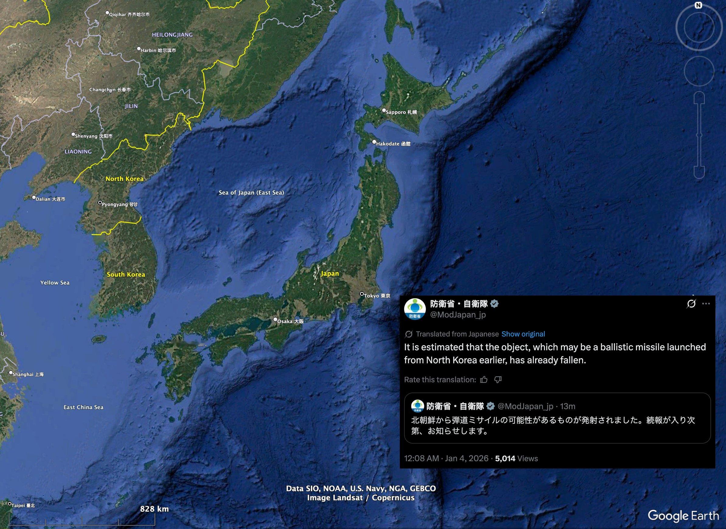 日本防卫省:朝鲜发射弹道导弹