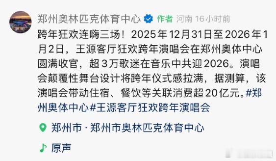 王源郑州演唱会带动消费超20亿王源的权威谁还后知后觉啊,太强了,演唱会带动消费超20亿,真的是财源滚滚啊2025娱乐年终盘点非正式跨年派对
