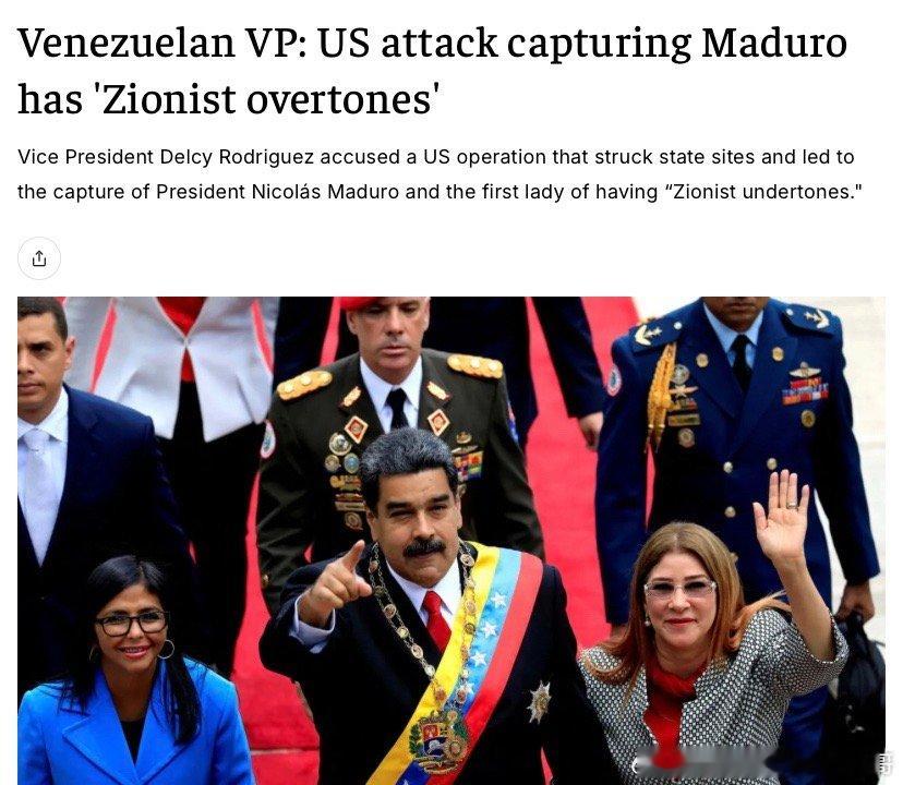 这也扯上以色列马杜罗被美军抓走后,委内瑞拉副总统接任总统,她公开讲话传播阴谋论。她声称:委内瑞拉是带有犹太复国主义的底色攻击的受害者和目标。特朗普称将占领管理委内瑞拉 特朗普抓马杜罗和以色列有什么关系?可见委内瑞拉人被洗脑成啥样了?海外新鲜事
