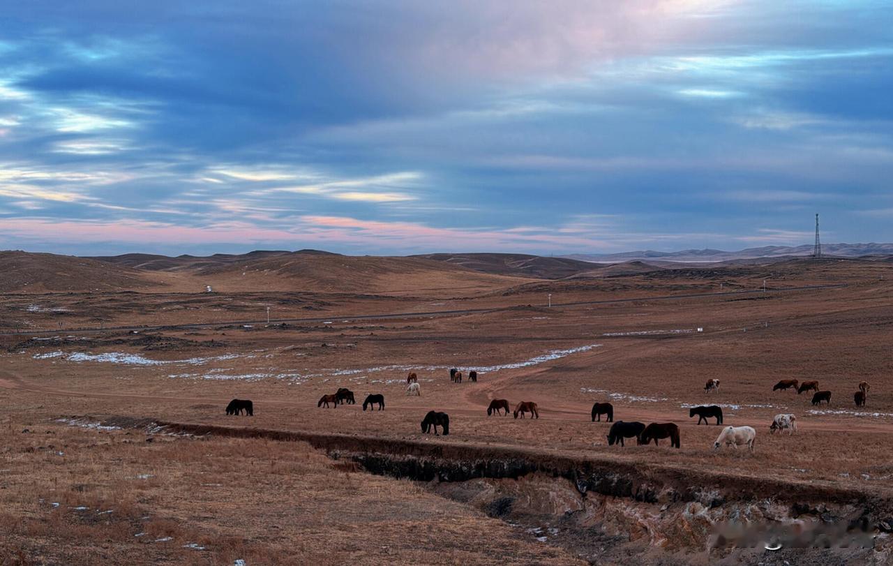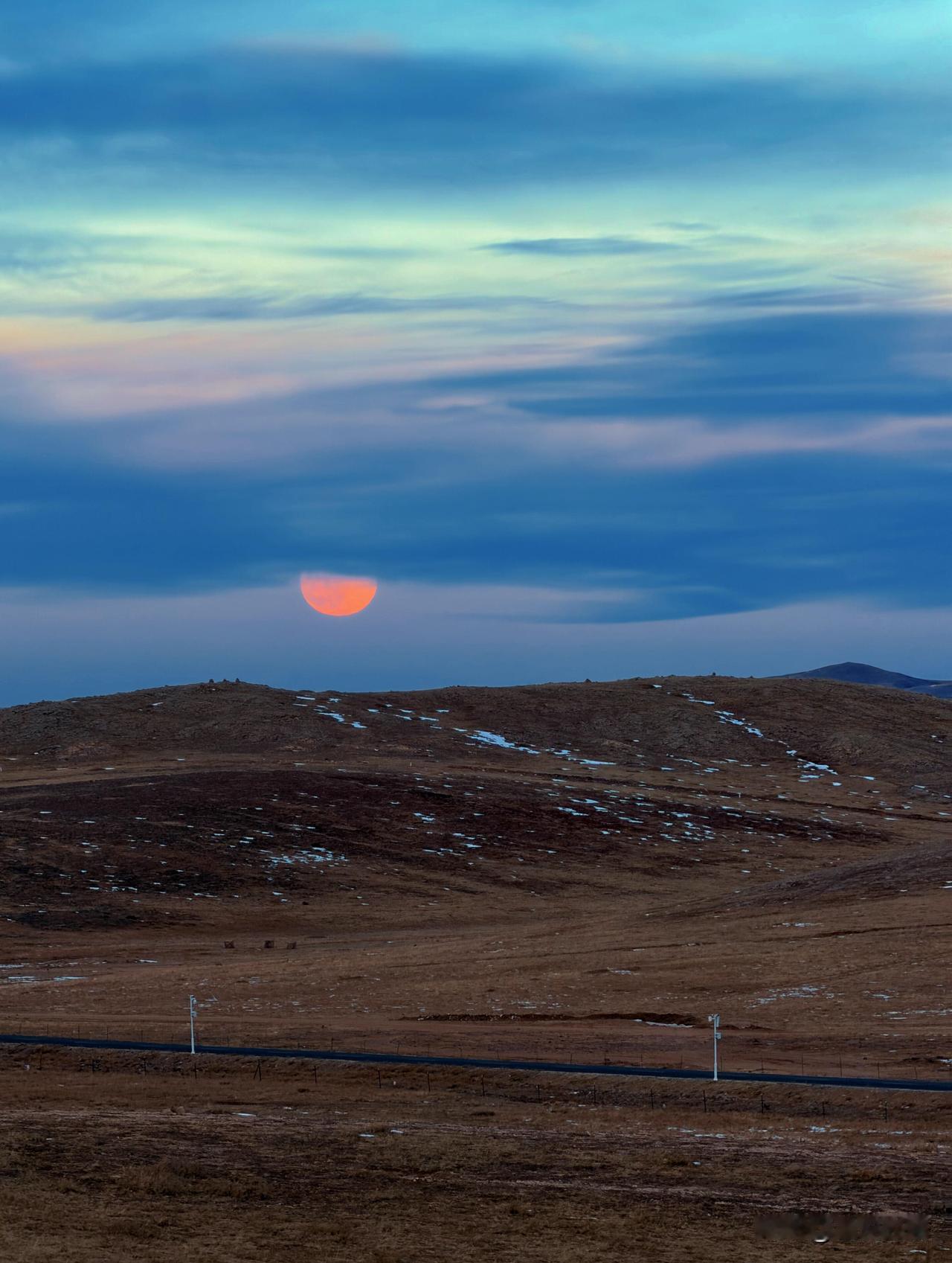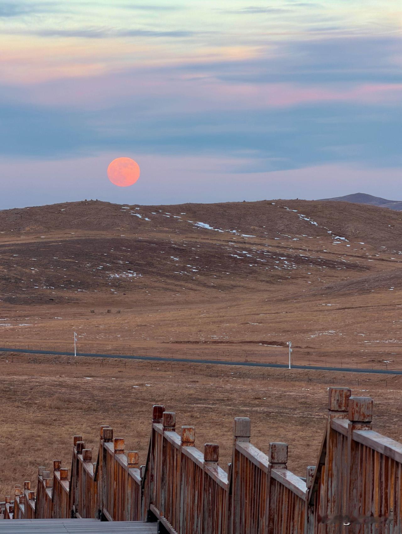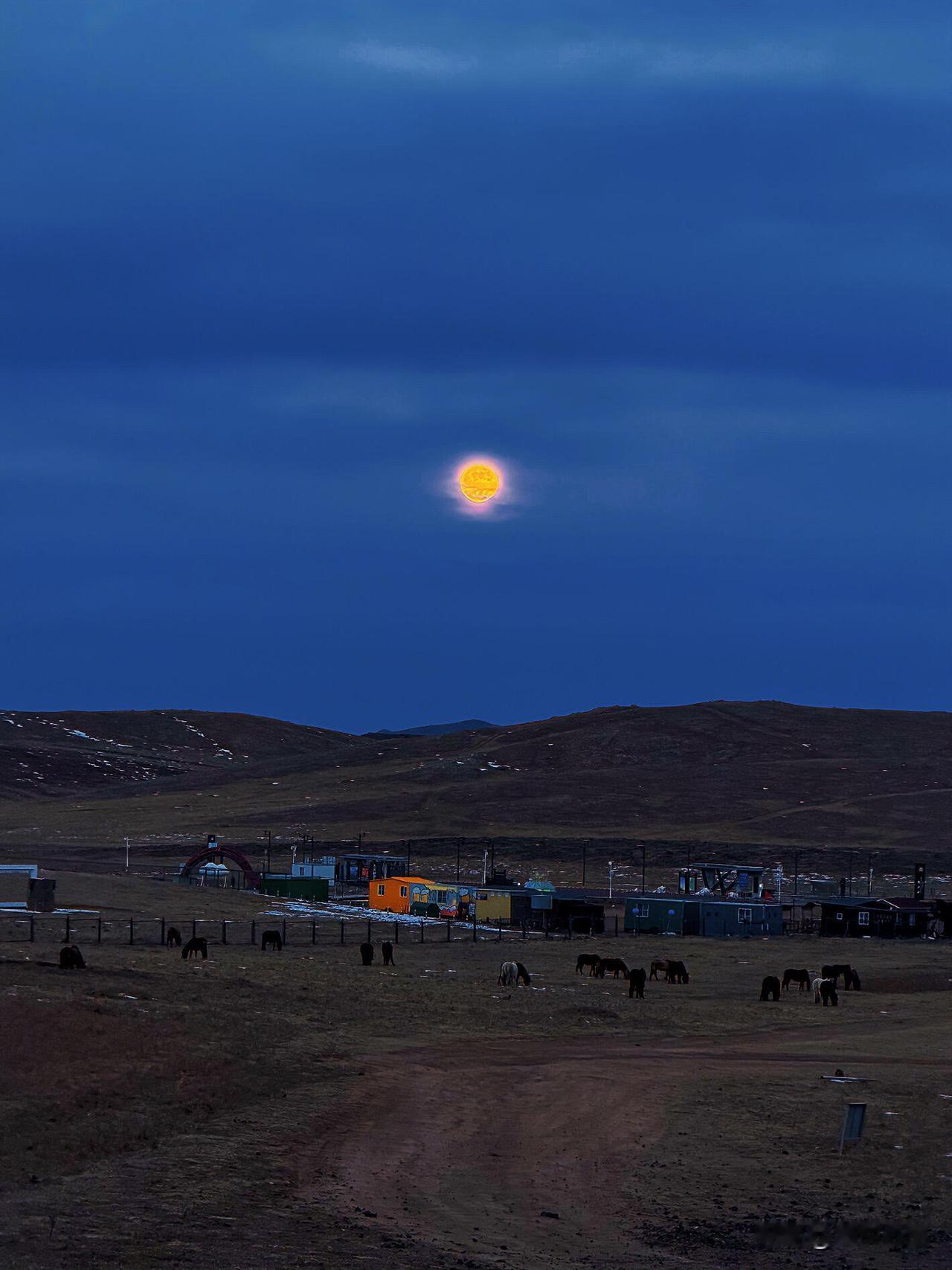 我的天啊! 第一次在内蒙看月亮, 超大的粉色超级大月亮也太绝了吧! 在乌兰哈达火山口看粉色月亮升空, 真的美到失语! 粉乎乎的月亮配着天边云霞, 慢慢染成金色, 远处晚霞映着雪山, 牛马慢悠悠往家走。 360度全是美景, 这场景这辈子能亲眼见一次, 真的没白活! 原来大自然的浪漫, 能这么震撼人心, 谁看了不说一句内蒙古yyds!