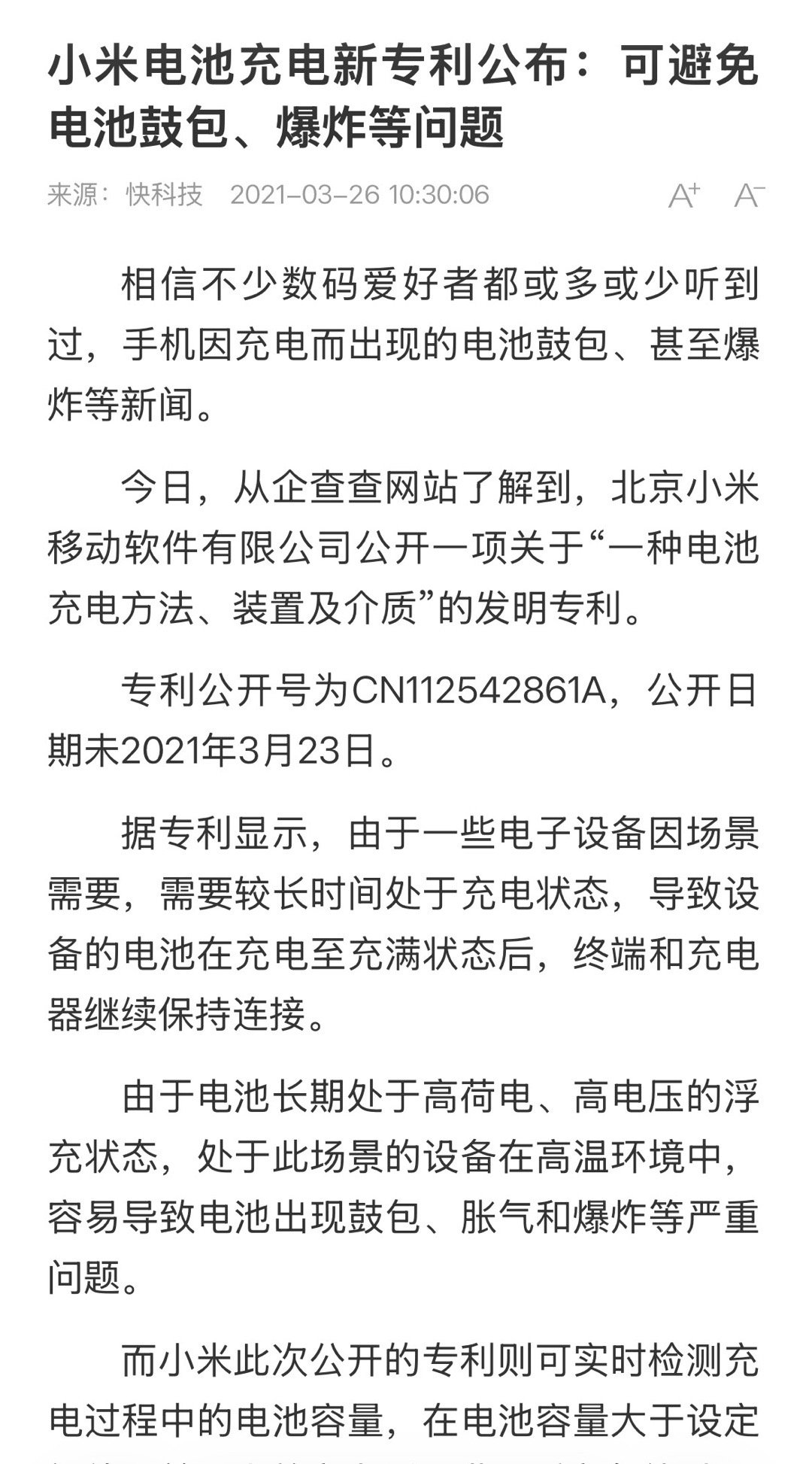 想什么呢?手机鼓包爆炸是电池材料属性的问题,小米在这块儿有相关专利???