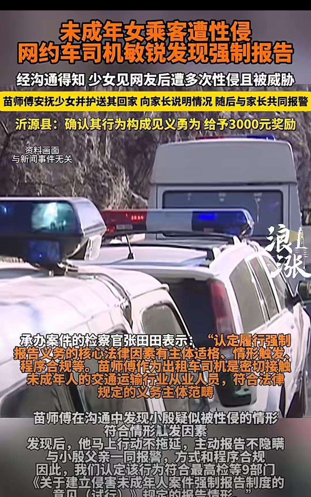 网约车司机一个暖心举动,直接救了受害女孩和她全家!去年1月,苗师傅接单时留意到未成年女孩小殷面色惨白、举止躲闪,细问之下才得知她被网友暴力性侵,还因对方威胁不敢声张。 苗师傅没有袖手旁观,一边轻声安抚“这不是你的错”帮女孩卸下心理枷锁,一边鼓励她和父母坦白真相,还亲自护送女孩回家,陪着女孩父亲去派出所报警,全程协助取证推动案件进展。最终苗师傅因主动履行强制报告义务、见义勇为,被授予荣誉称号和3000元奖励。 这事最戳人的点在于:强制报告义务从来不是冰冷的条款,而是普通人守护未成年人的底气,举手之劳的善意就能改写一个孩子的人生轨迹。 你觉得除了荣誉和奖金,还能怎么让更多从业者主动扛起这份守护责任?