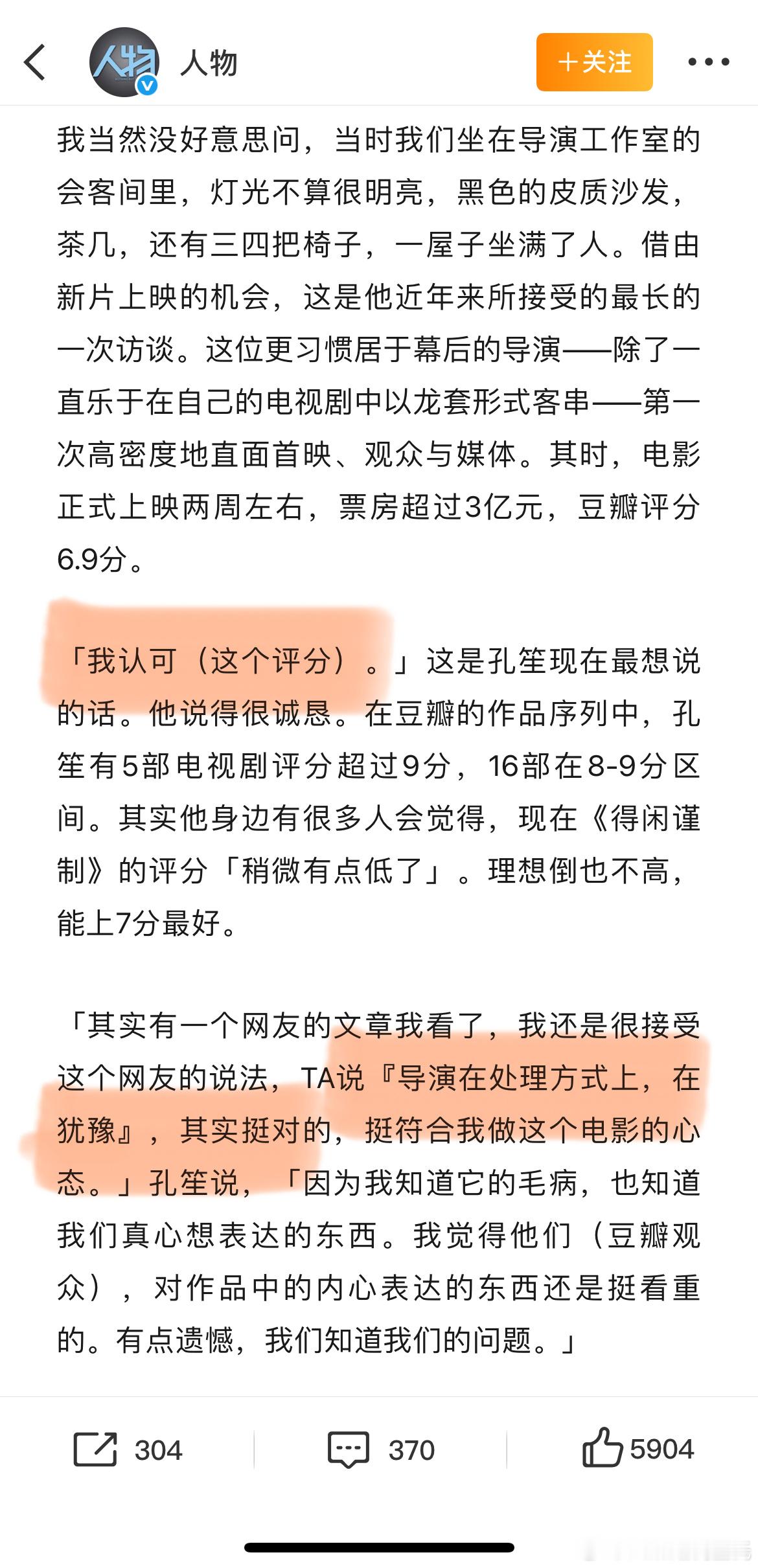 孔笙回应得闲谨制豆瓣评分得闲谨制豆瓣评分6.9,孔笙导演说“认可这个分数”,有个