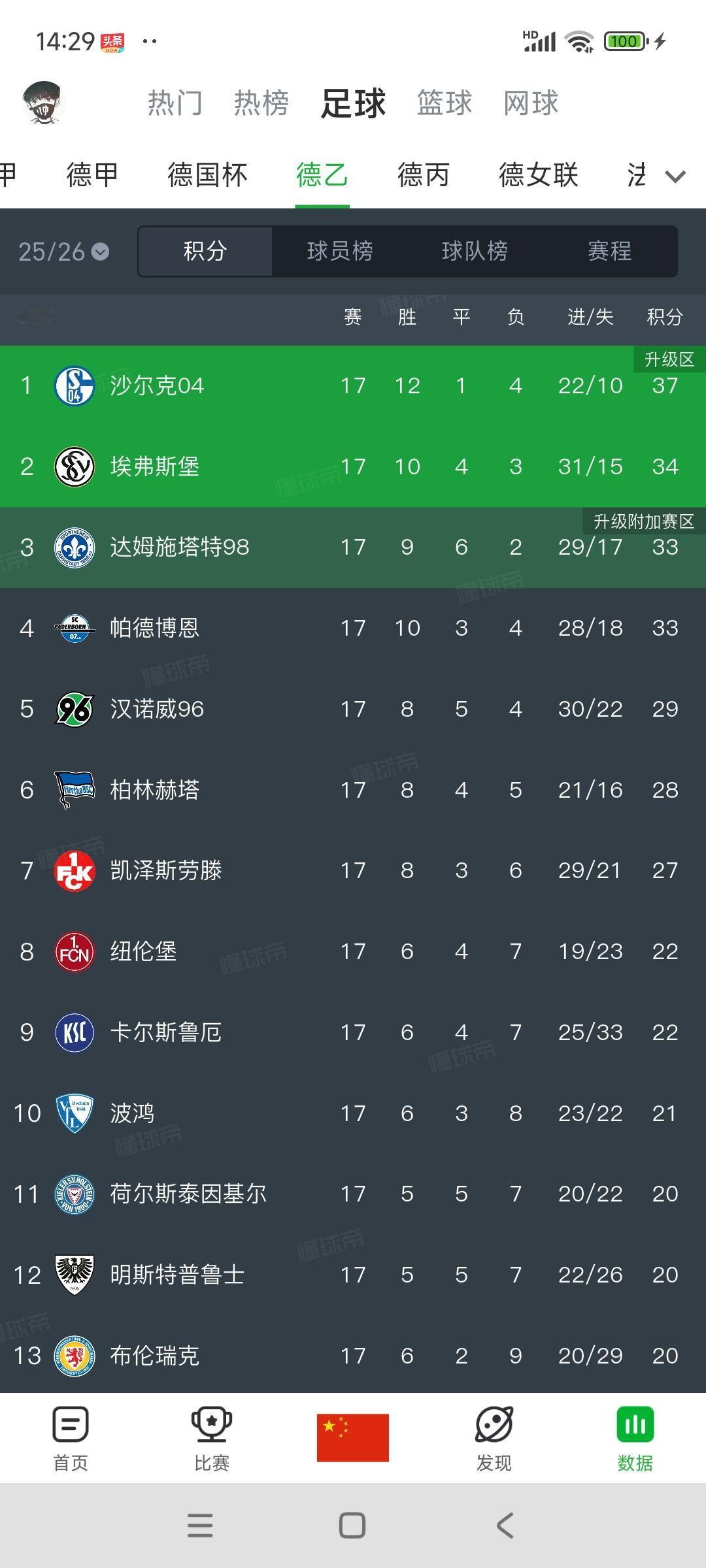 德乙积分榜,沙尔克04快回来了! 他们可是7次德甲冠军,拜仁历史强有力的竞争对手,多特蒙德的死敌。 上赛季德乙霸主汉堡来德甲,目前排名13感觉有点想回去....[笑哭] 但是沙尔克04志不在德乙,回来踢多特,决战拜仁慕尼黑!![送心]