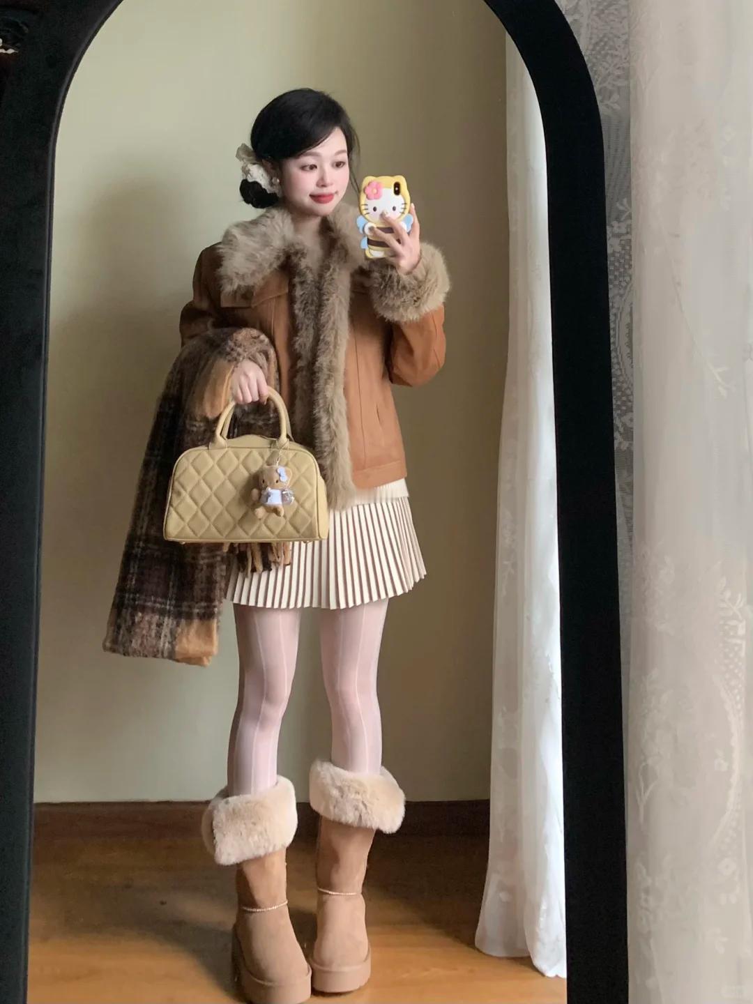 小个子冬季氛围感穿搭技巧分享~ 冬季小个子想要穿出氛围感,关键在于比例优化与层次营造。 1、搭配技巧 上衣外套优先选短款羽绒服或毛绒外套,长度控制在臀部以上,搭配高腰直筒裤/A字裙,轻松拉长腿线。 内搭建议用修身针织衫叠穿衬衫或薄款高领打底,通过领口细节增加层次感,避免臃肿。下装选择九分裤或及踝半裙,搭配浅口短靴或乐福鞋,露出纤细脚踝更显高挑。 2、颜色选择 色彩搭配上,同色系穿搭(如米白+燕麦色、灰粉+奶茶色)能纵向延伸身形,局部用亮色围巾/帽子点缀吸睛。 材质混搭是氛围感秘诀:羊羔绒外套配皮质短裙,针织开衫叠穿绸缎衬衫,刚柔并济提升质感。 配饰方面,选择小巧精致的贝雷帽、毛线帽,或用长款项链引导视线,背包选迷你斜挎包更显利落。 最后,保持发型蓬松(如微卷发、半扎发),搭配暖调妆容,整体氛围感瞬间拉满,小个子也能穿出冬日温柔气质。