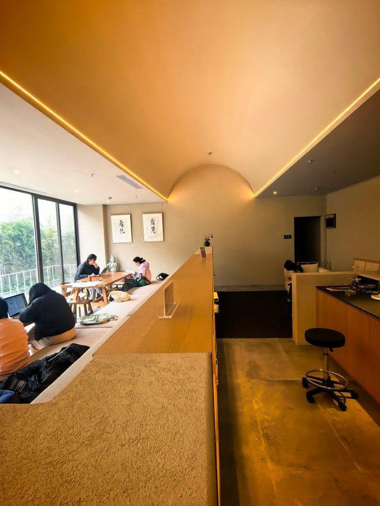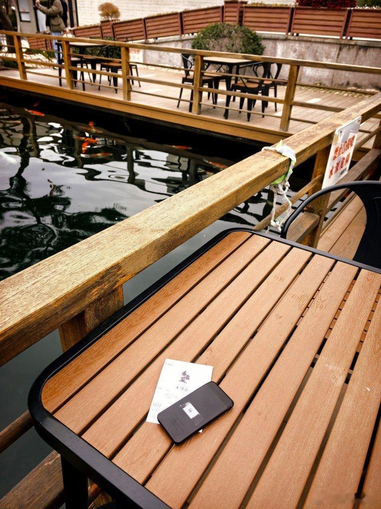 对着锦鲤池,喝杯清静咖啡此时应该有茶这庙不错,下次来抄经