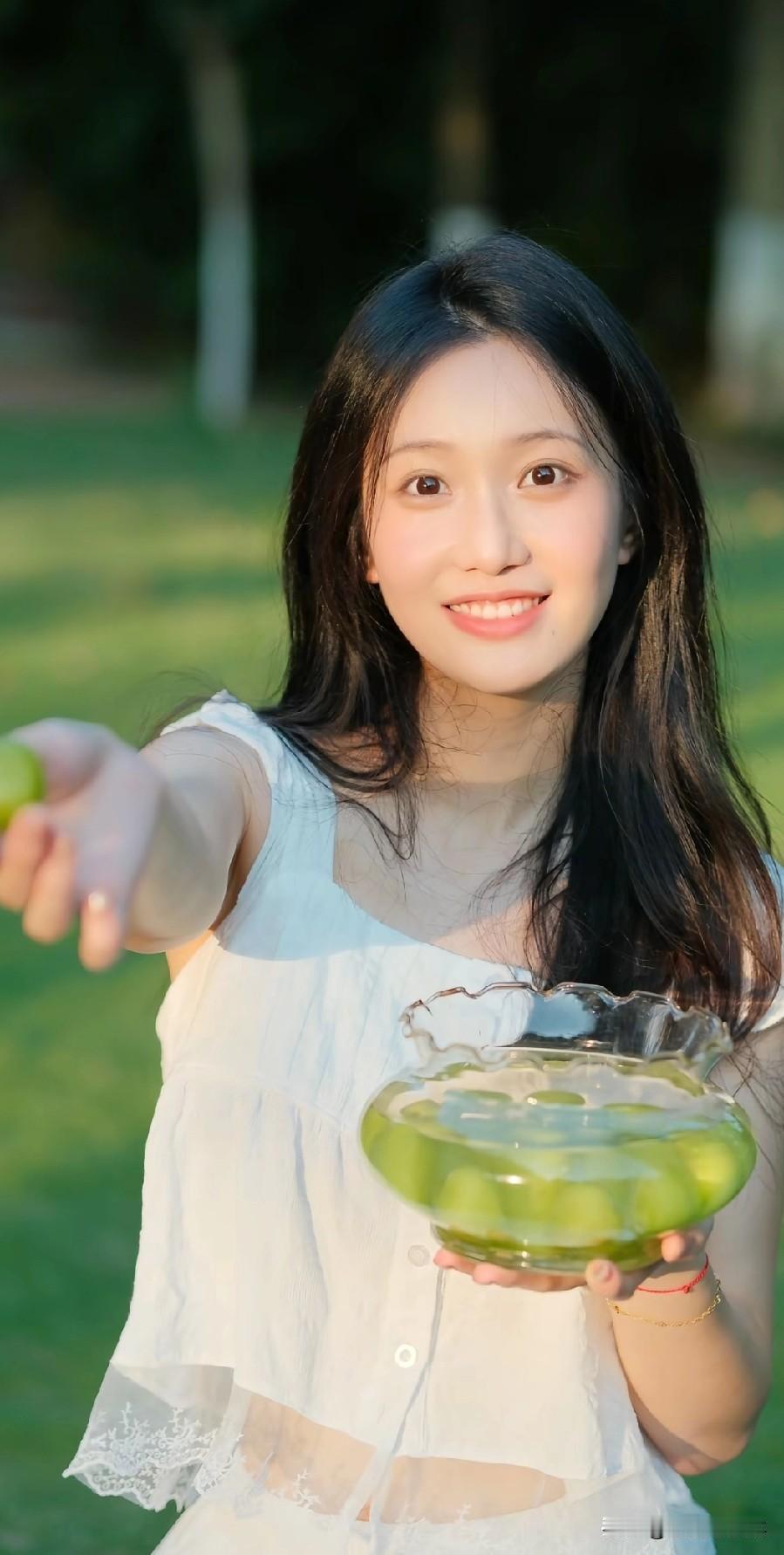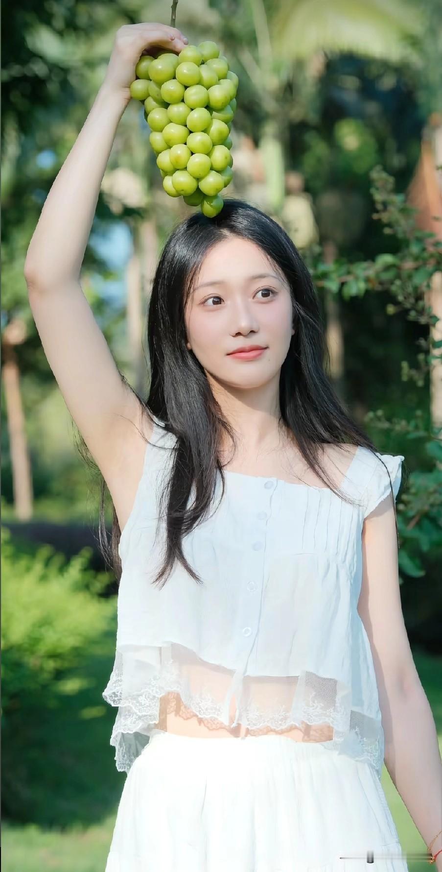 清新简约风,白色无袖上衣搭配自然妆容,简约而不失优雅。