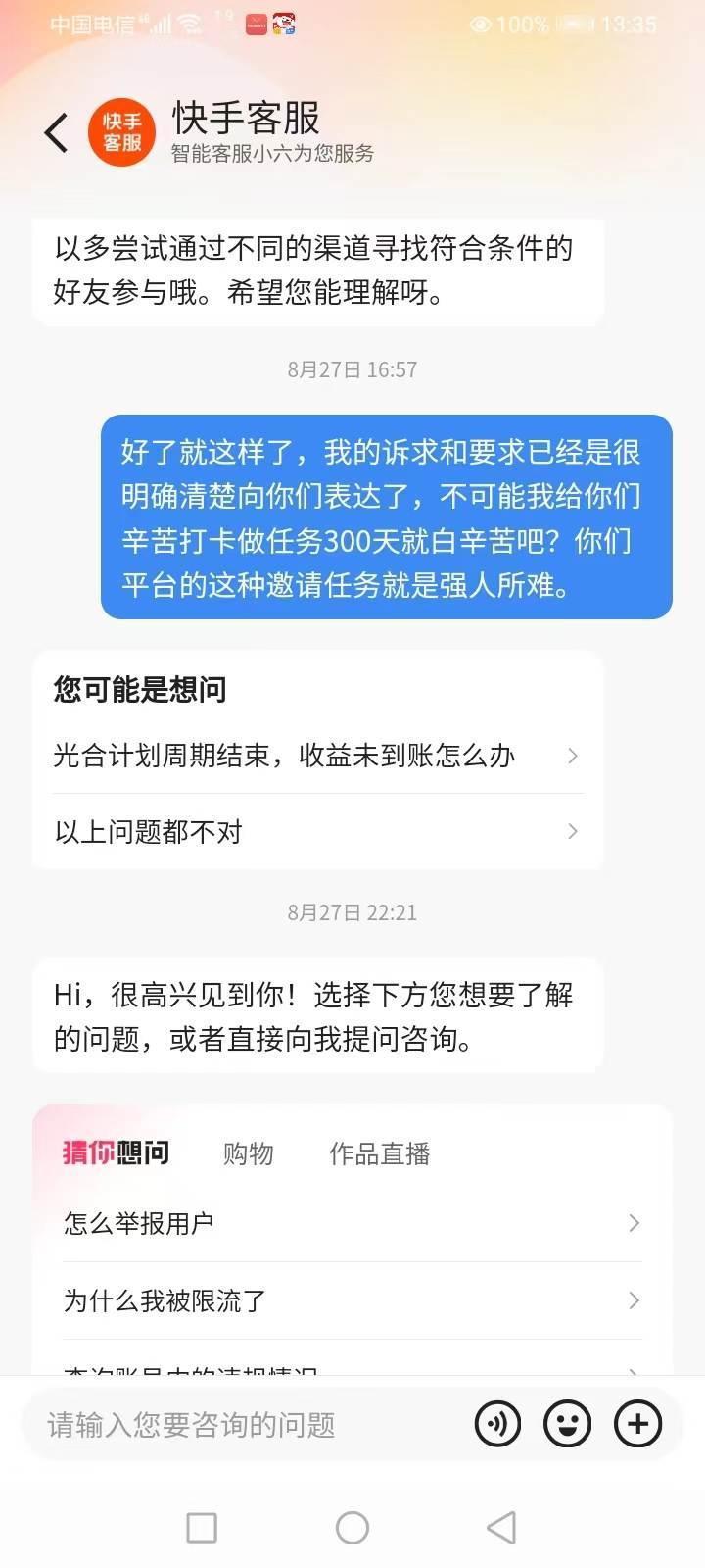 老人打卡542天,平台突然加码拉人头,时间成本谁来买单? 刘先生是重庆人,今年五十岁,他母亲生病住院,他在医院陪护期间下载了快手极速版,平台说只要打卡满365天就能免费领到iPhone 16 Pro或者3650元现金,他就相信了,开始每天坚持打卡,结果打到第242天时,平台突然告诉他必须邀请30个从未登录过的新用户,不然任务就作废,他事先没有准备,也找不到这么多人,最后只好中断。 他接着参加另一个领3650元的活动,这次打到300天,平台又提出同样的拉人要求,他计算一下,前后总共花掉超过1080小时,平均每天两小时以上,这些时间不是随便刷视频,而是必须盯着屏幕看广告、点开支付宝、完成各种小任务,系统还会自动暂停计时,逼人重新开始,他觉得,自己付出的时间应该折算成钱补偿回来。 客服说任务都是系统随机发的,大家不知道什么时候要拉人,也不知道要拉几个,页面上写的3650元现金奖励,其实说的是奖品价值,不是真给现金,后面打卡越久,奖品价格越高,任务也变得更难,如果中间断了打卡,想继续就得花钱买金币,或者再拉五个新人,就算你这次续上了,下次可能还是卡在拉人这一步,根本停不下来。 不只有他一个人遇到这种情况,微博、知乎、豆瓣上有很多人都在说,自己在200天到305天之间突然被要求拉更多人进来,有人201天就被卡住,有人301天连续触发好几次任务,不少人发帖请求别人帮忙找那些超过30天没登录的好友,还有人提到早知道最后要拉人,当初就不该参加,最麻烦的是那些卡在305天的人,亲戚朋友全都邀请过了,还是凑不够人数。 平台宣传语存在问题,它一边说可以白拿手机和得到3650元现金,一边又悄悄改成奖品价值,这种做法可能误导人,《广告法》明确规定不能进行虚假或误导的宣传,他们还声称任务是随机下发的,不告诉用户具体规则,实际上把用户的社交关系当作工具来用,用户需要靠熟人帮忙完成任务,这相当于变相强迫用户动用私人资源,《电子商务法》也要求交易信息必须明确和可预期,但平台完全没有做到这一点。 更关键的是,平台不在意你能不能做完任务,他们就想让你多花时间看屏幕,提高使用时长和活跃度,你每天打开App,系统就记下你的行为,给你打标签,以后推送广告就更准了,拉人头的任务,其实是为了用低成本拉来新用户,那些30天没登录的人,多半是僵尸号或者不怎么活跃的账号,平台本来就没指望他们留下来,只要注册过就行。 其他平台也有相似玩法,比如抖音签到赚钱、拼多多砍一刀、百度做任务赢红包,这些活动开始容易,后面越来越难完成,但快手做得更绝,它的任务不是一步步增加难度,而是突然提高要求,奖品还经常包装成“现金”,让人觉得一定能拿到,其实它并不指望你做完任务,而是想让你中途放弃时,因为不甘心去花钱续签,或者转发找人帮忙,这样就能带来更多传播。 用户花费时间、投入精力、动用关系去完成这个任务,结果什么也没有得到,平台却靠着这套办法吸引流量、收集数据、拉来新用户,表面上给用户好处,实际上是在消耗用户的注意力和社交资源,这种设计早就不是游戏或活动了,它更像是一场精心计算的消耗战,用户越是认真参与,平台就越高兴。