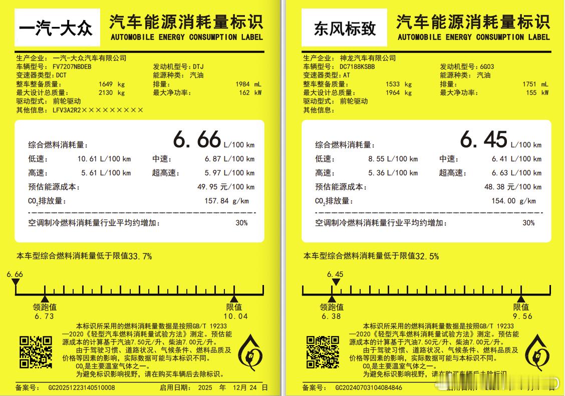 说标志508L是高速更省油的B级车那么比比吧左侧是迈腾,右侧是508L综合油耗是508L更低一些,WLTC的低速、中速、高速三个速度段都是标志508L更低油耗。只有超高速段,迈腾略低有点意思啊