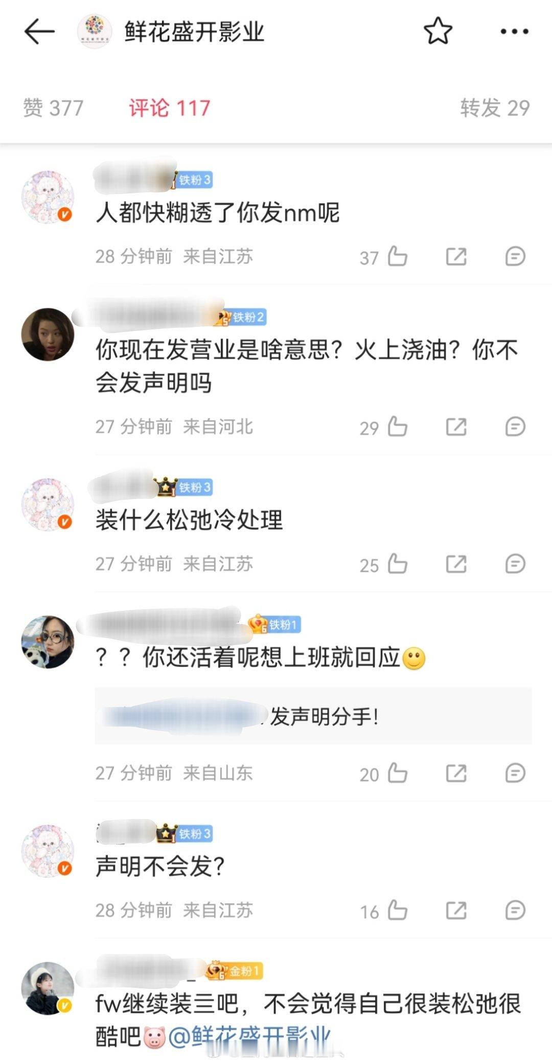 向涵之评论区都在催分手,公司新发的下面都在骂不作为,催着发声明了,可是声明能写啥