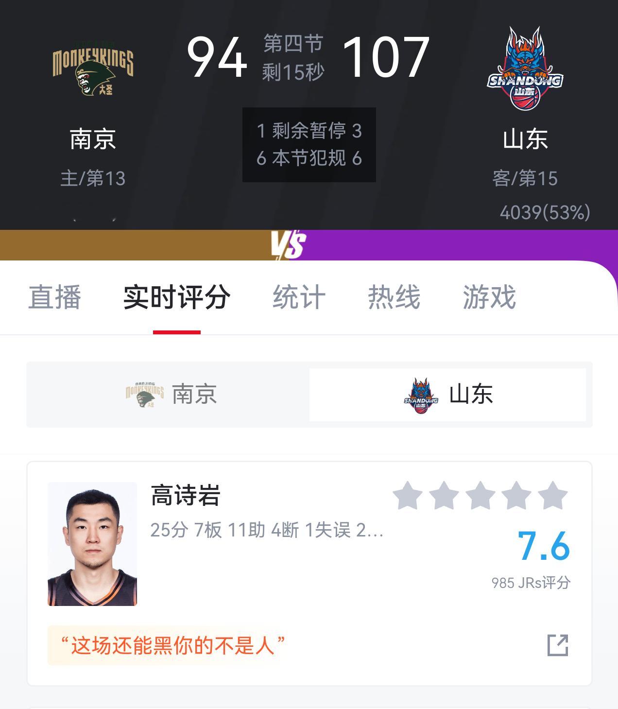 高诗岩今天打的不错,25分7篮板11助攻,命中率72%,这一场估计能把自信心找回来不少了。cba