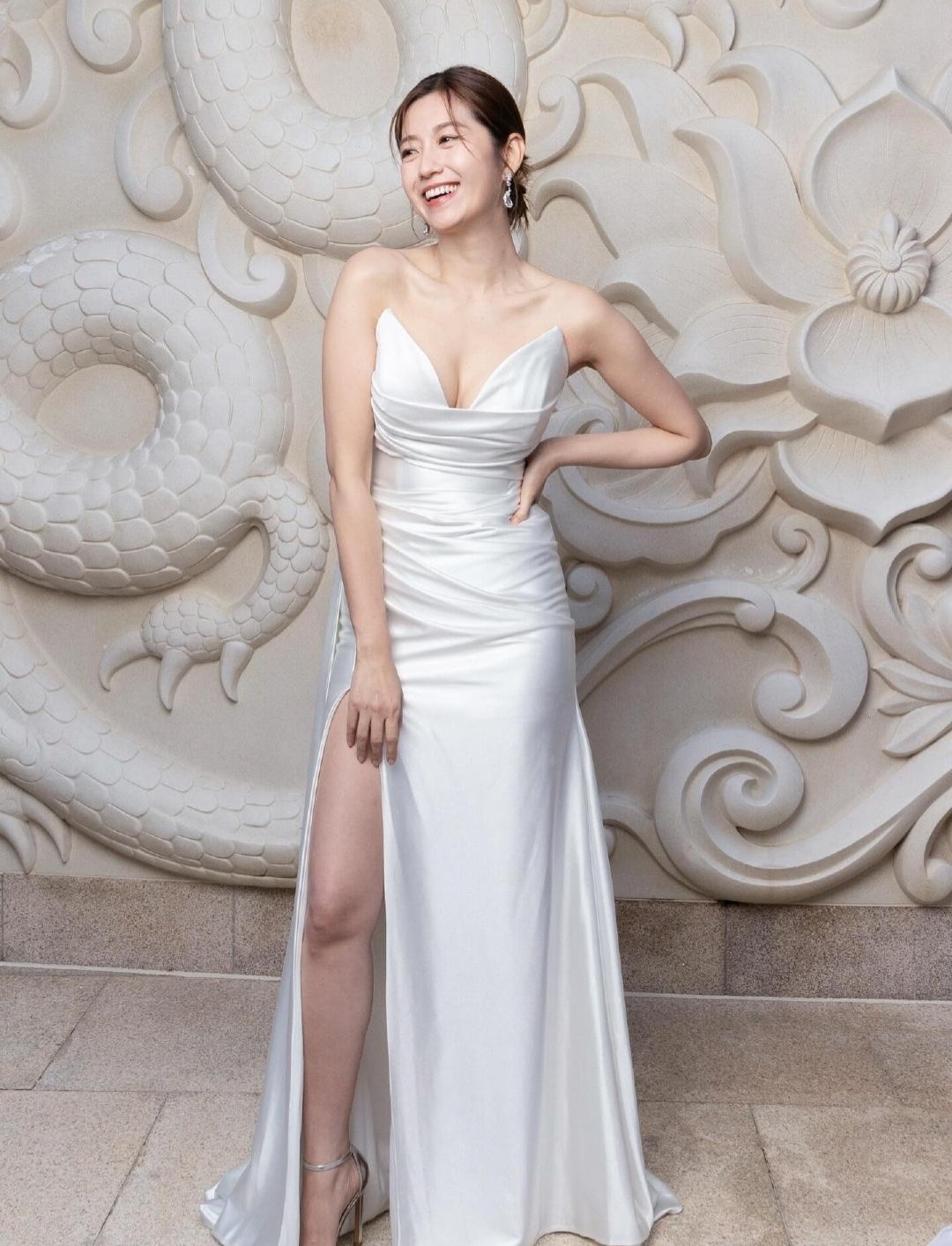 陈自瑶TVB颁奖礼红毯直接放飞自我!一身开叉长裙真的把个性焊在身上了,上身居然就靠一块布裹着。那块滑溜溜的缎面布料斜挎着肩头,顺着身形往下垂,没有多余的拼接和装饰,就这么简简单单一块布,居然把她的肩颈线条、腰肢曲线勾勒得明明白白!紧致又不紧绷,那种毫不费力的性感真的绝了,灯光一打,布料的光泽感配上自然垂下来的褶皱,高级感直接拉满!下身的高开叉更是点睛之笔,跟上身的“一块布”设计刚好呼应,走路的时候大长腿若隐若现,每一步都踩在我的心巴上!没有花里胡哨的点缀,就靠这敢穿的设计和自身的气场,在红毯上直接脱颖而出,这才是红毯该有的样子啊!